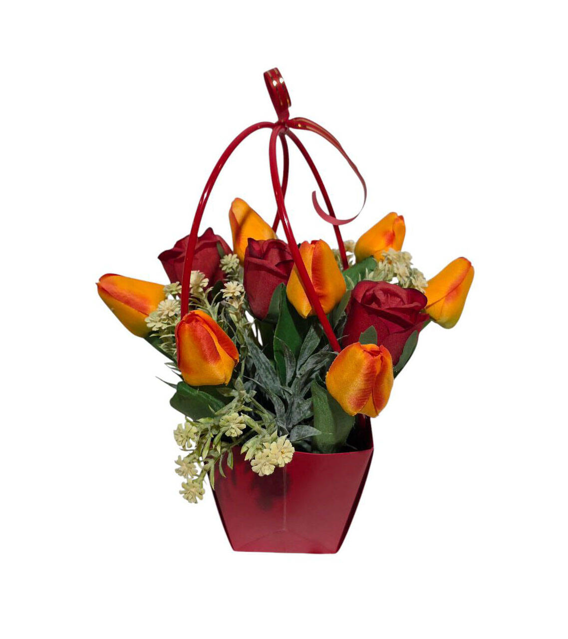 Сумочка червоні троянди з помаранчевими тюльпанами 31*21 см