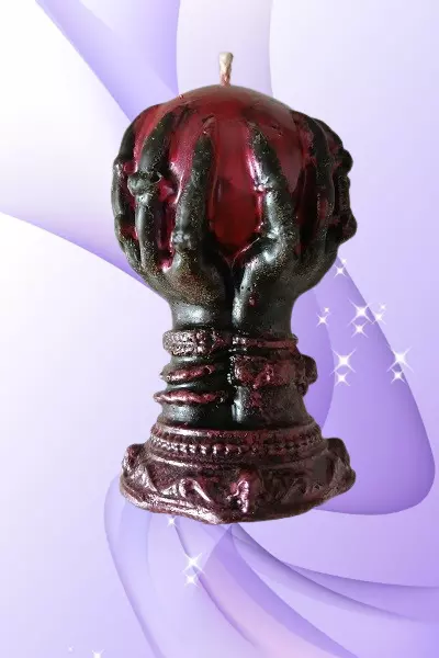 Ця унікальна ритуальна свічка у формі руки, що утримує магічну