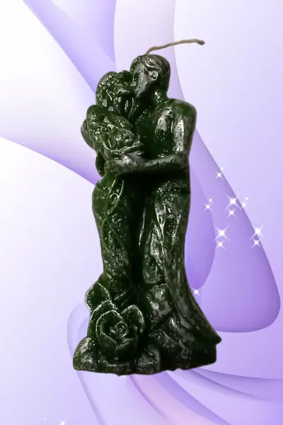 Свічка "Закохана пара" – зелена воскова Зворушлива та символічна свічка ручної роботи з натурального воску у формі закоханої пари. Зелений колір надає їй особливої енергетики — він асоціюється з гармонією, довірою, серцевою чакрою та відродженням почуттів. Символіка та значення: Закохана пара — єдність, любов, взаєморозуміння, духовний зв’язок. Зелений колір — гармонія, зцілення, зростання, відкрите серце. Чудово підійде: як подарунок для коханої людини; як символ любові та злагоди в домі; для романтичних ритуалів і медитацій; як елемент стильного декору. Матеріал: натуральний віск Колір: зелений Використання: декор, ритуали на любов і гармонію, медитації, подарунки