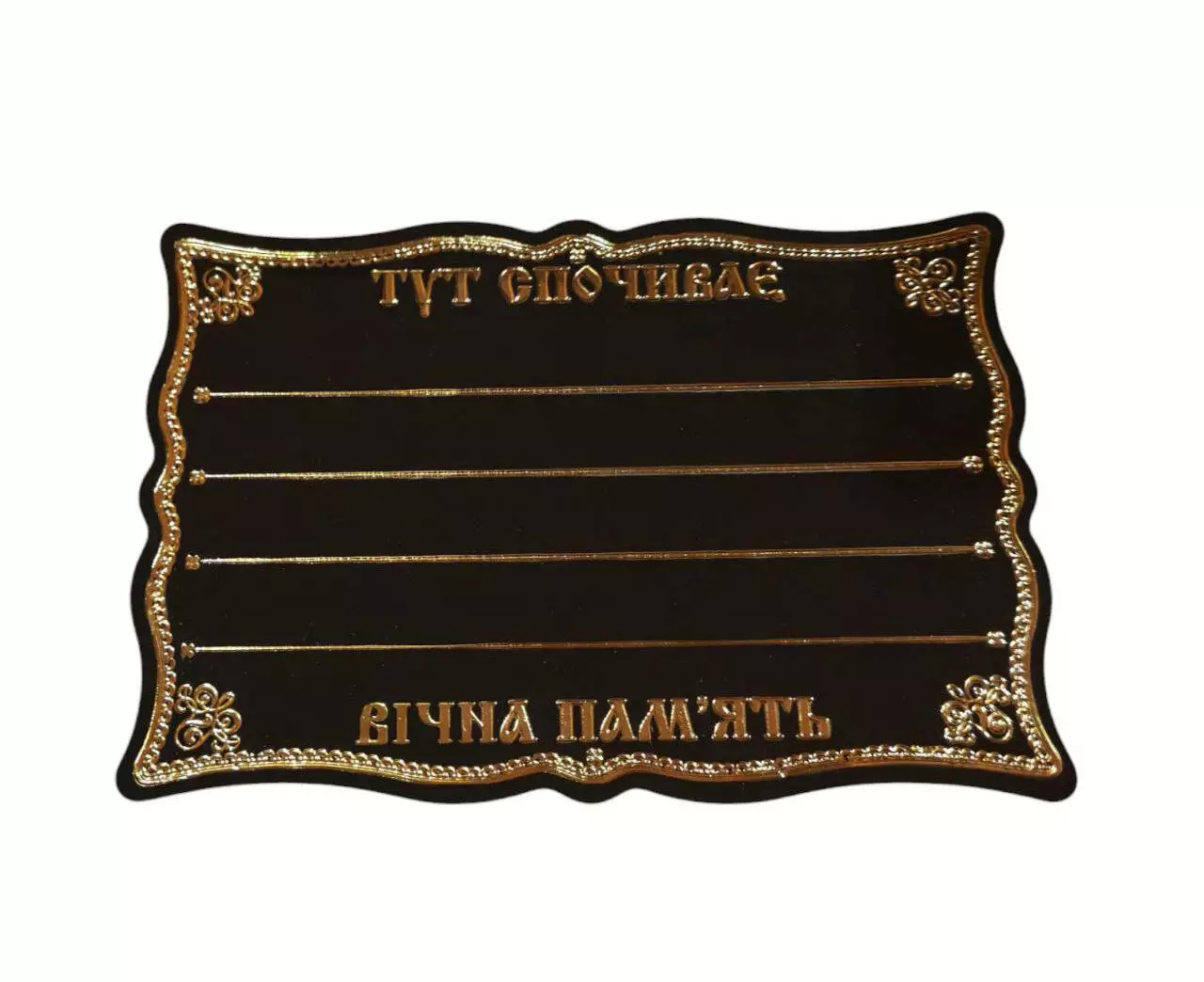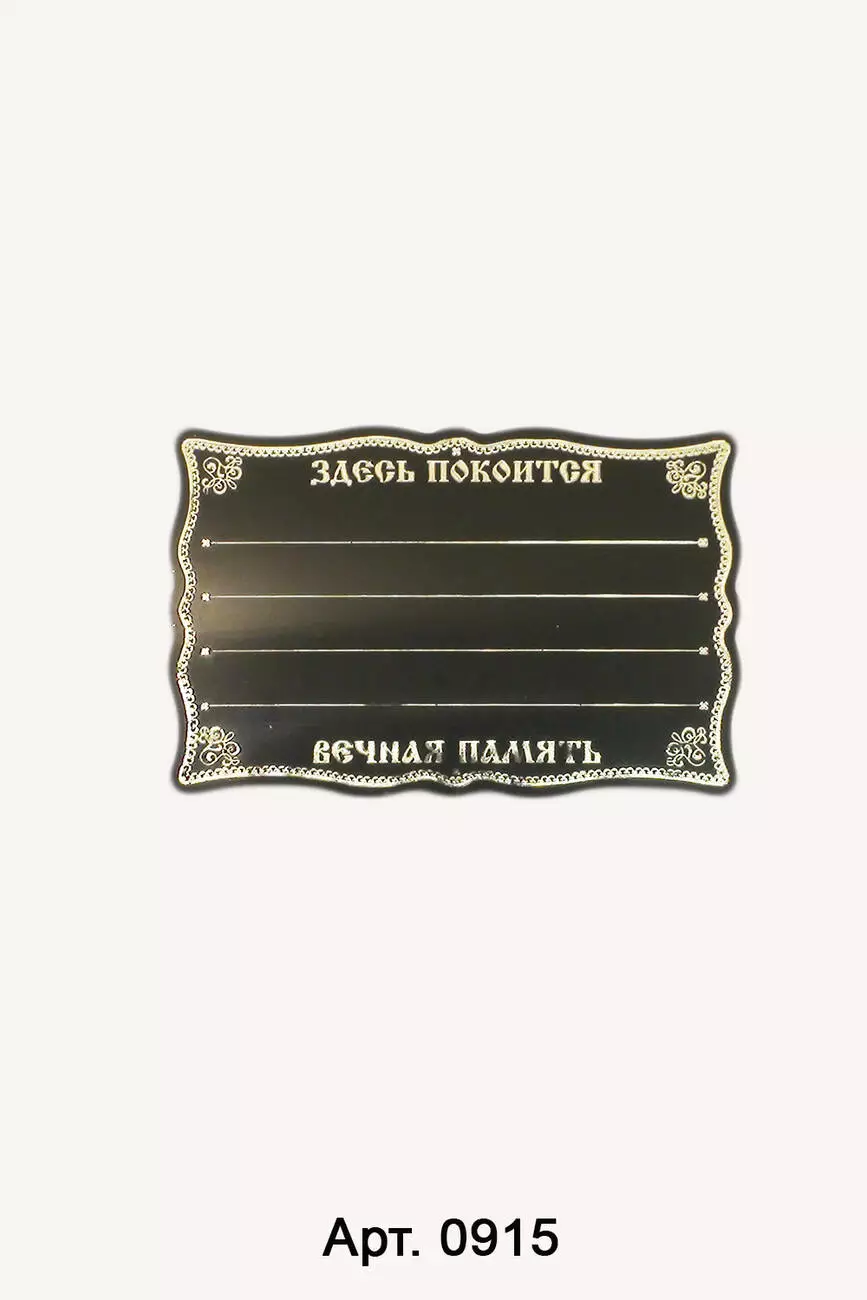 Табличка на хрест, розмір: 17*24 см. Виконана із чорного пластику,
