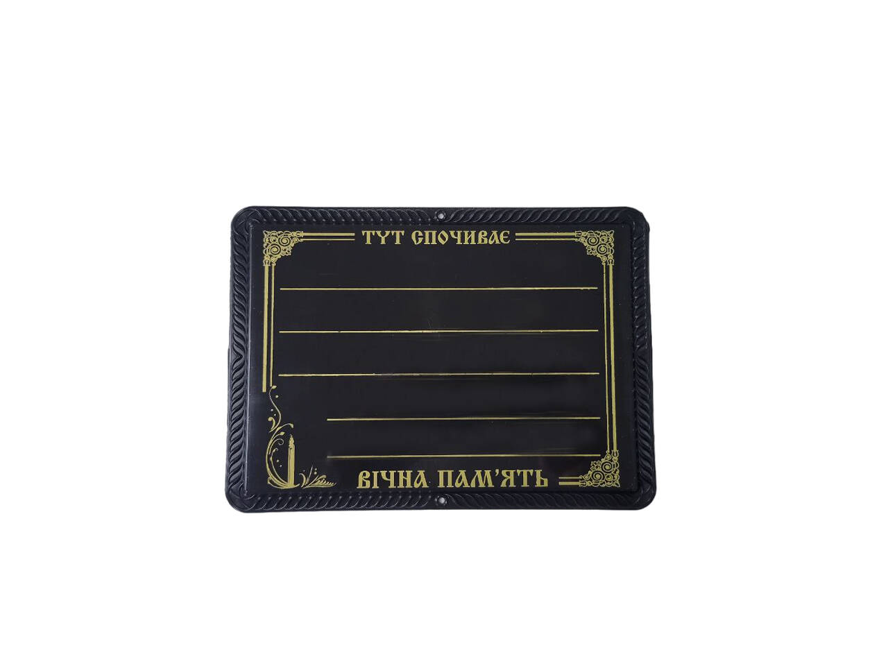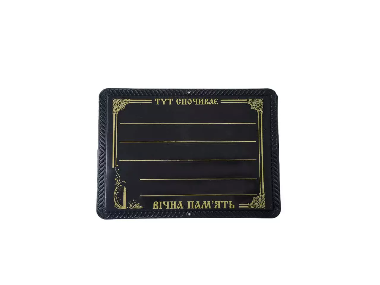 "Вечная память". На табличці розкреслені п'ять рядків для написання
