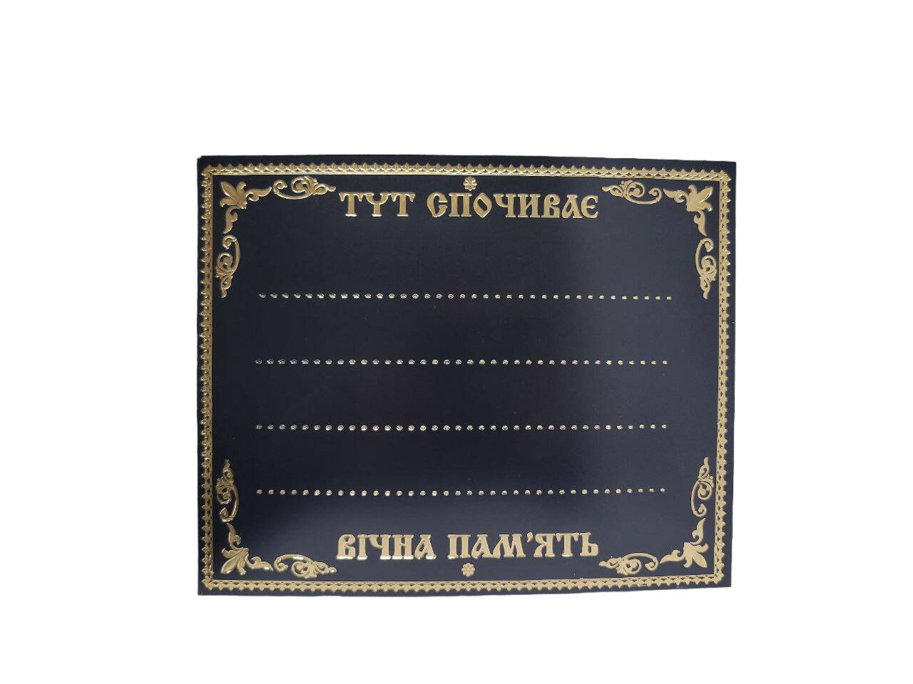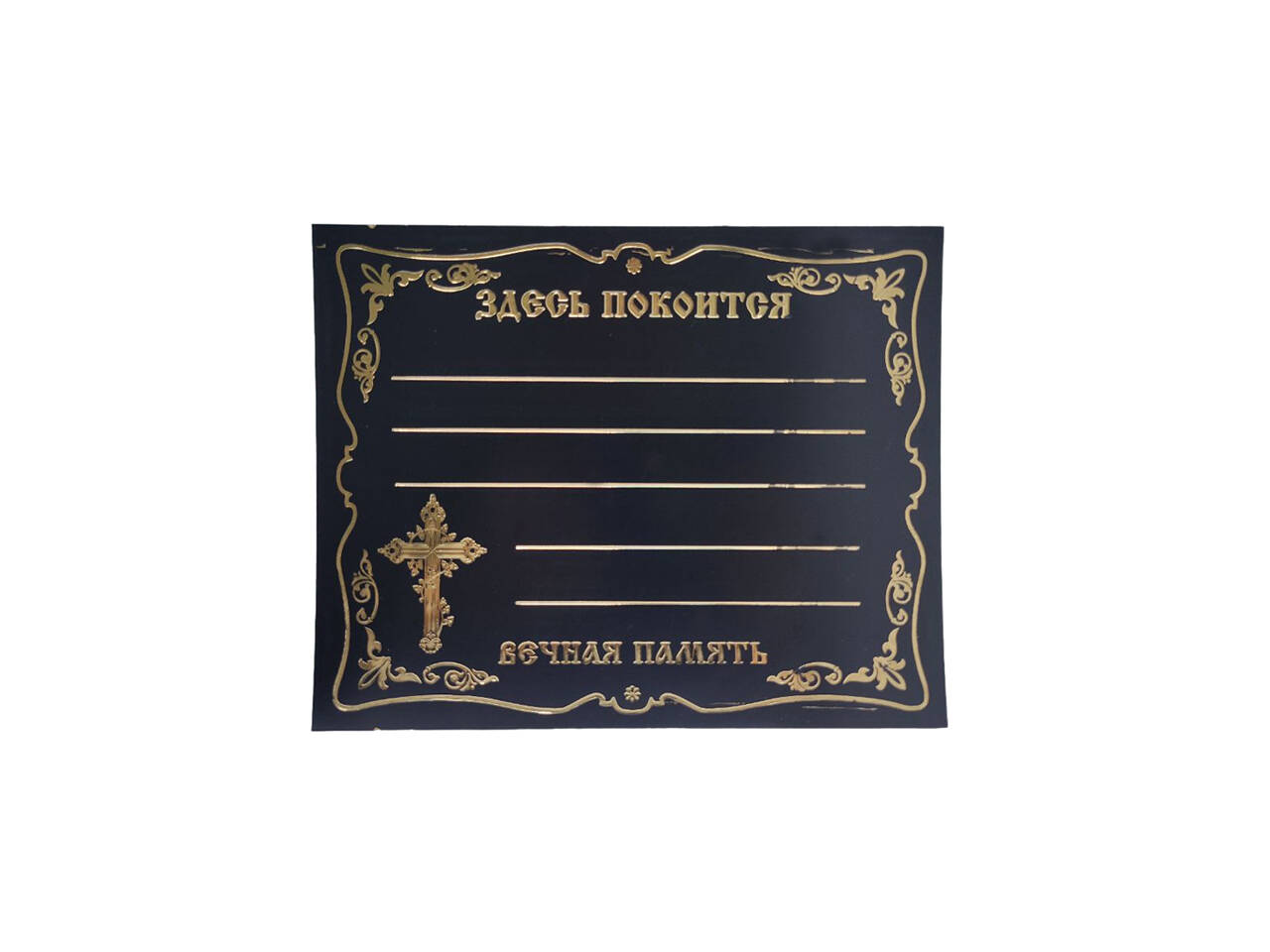Табличка на хрест, розмір: 20*25 см. Виконана із чорного пластику,