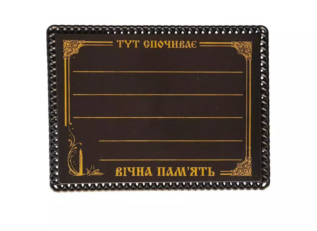 Табличка на хрест, розмір: 18*24 см, по краю візерунок. Виконана із