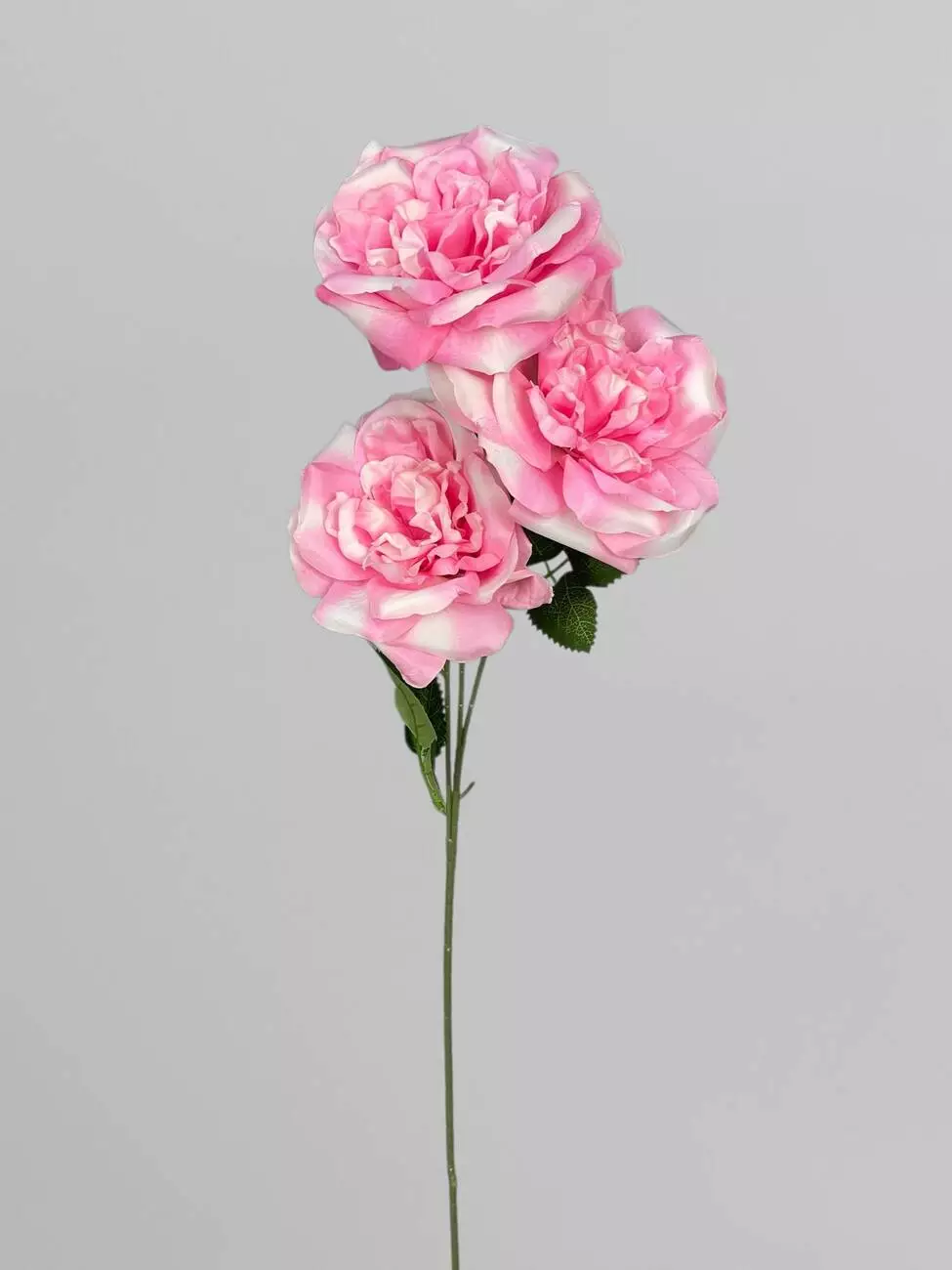 Троянда штучна, гілка на 3 суцвіття з сатину, рожевий, 68 см