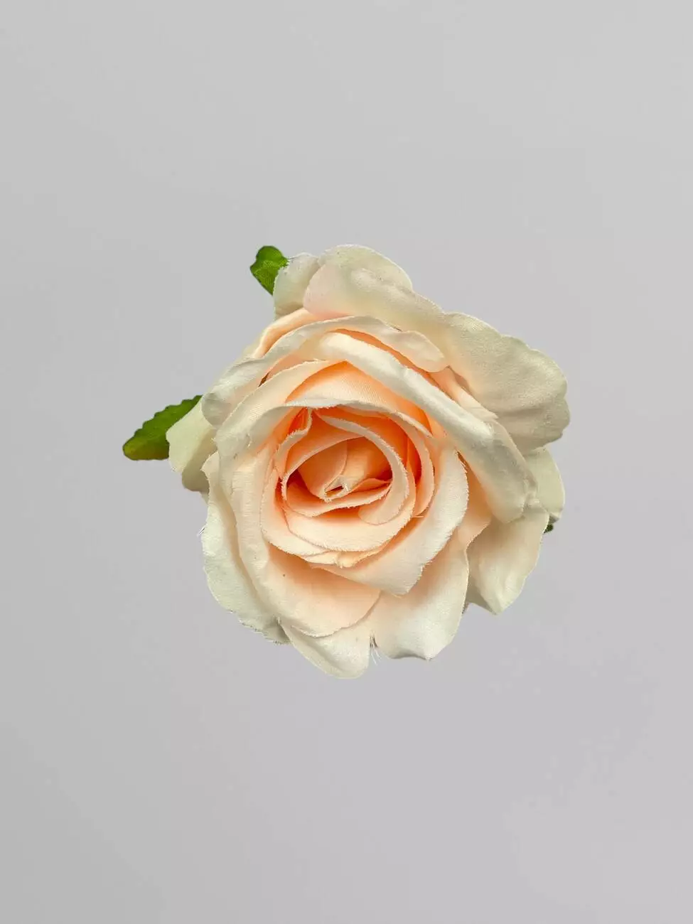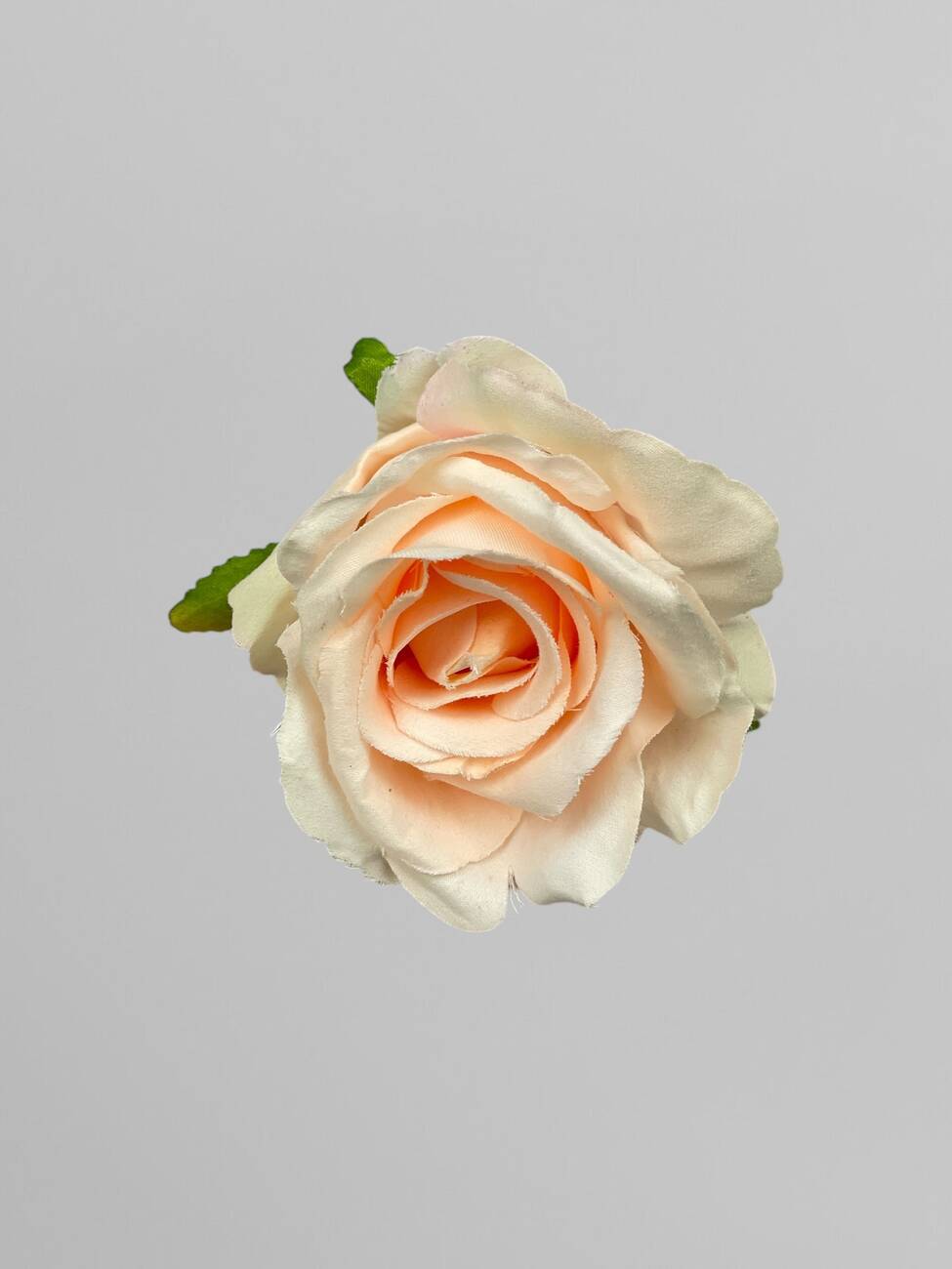 Троянда штучна із сатину, голівка для композицій, персиковий, 10 см