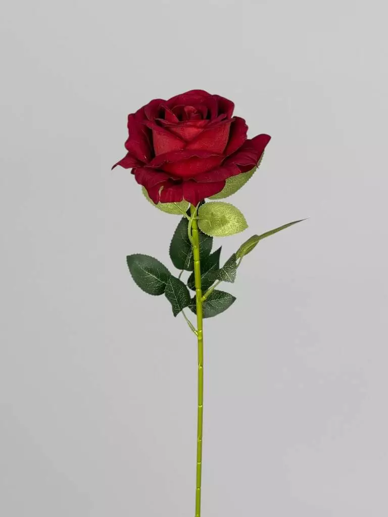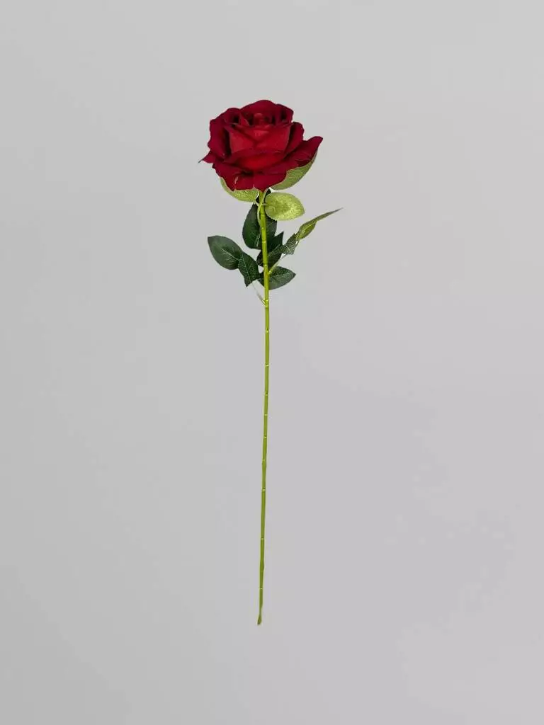 Троянда штучна оксамитова на стеблі 1 суцвіття, бордовий, 76 см