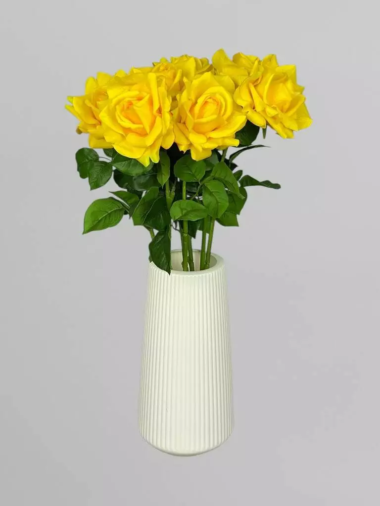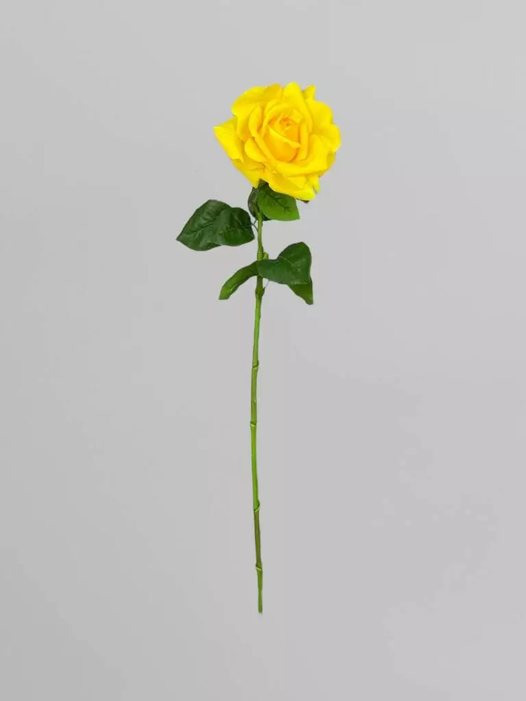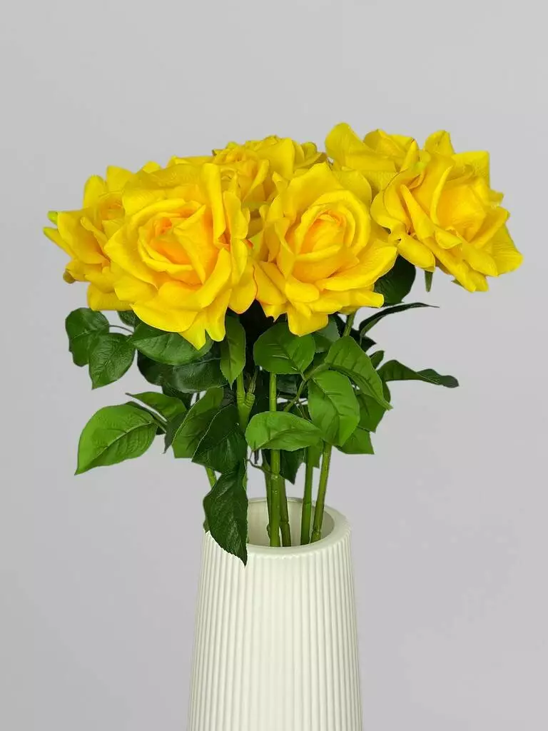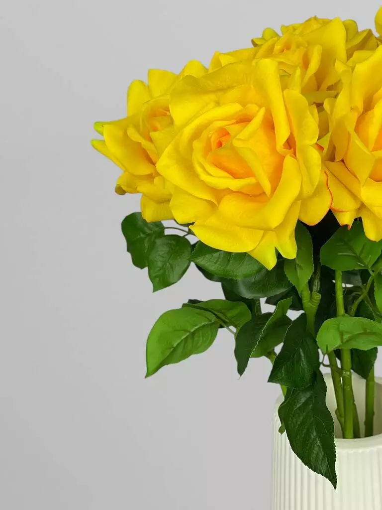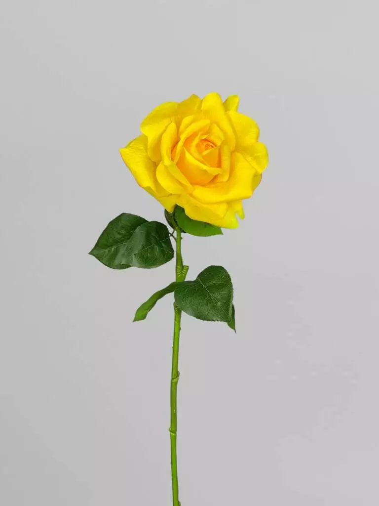 Троянда штучна як жива Real Touch на стеблі 1 суцвіття, жовтий, 64 см