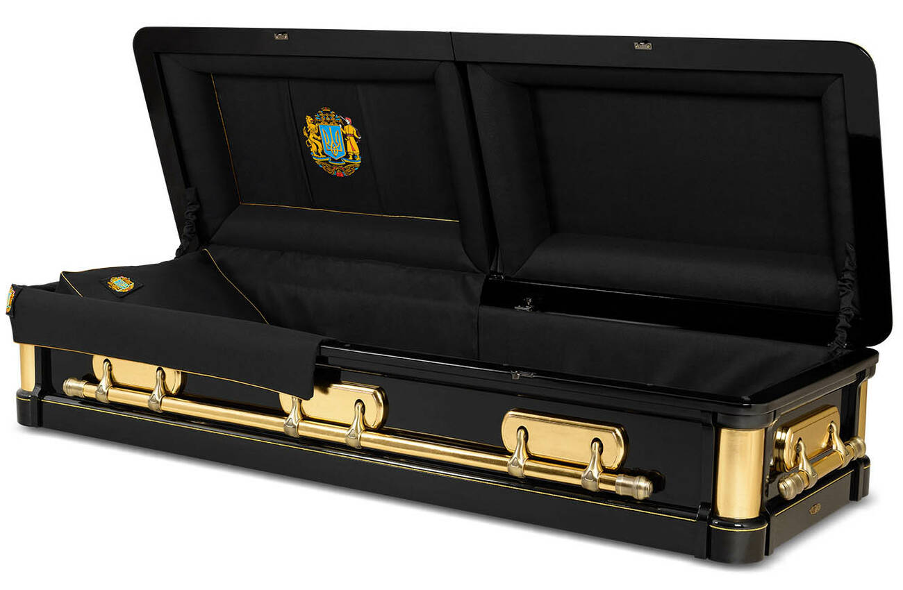 Труна Патріот сусальне золото з бронзовим оздобленням 70*213*53