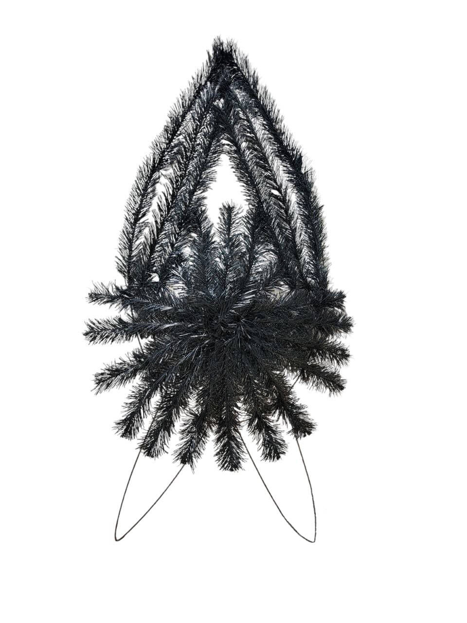 Вінок зі штучної хвої у формі краплі, зашитий по діагоналі, по краю