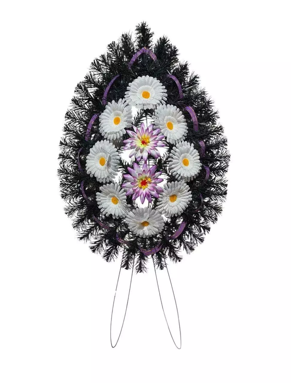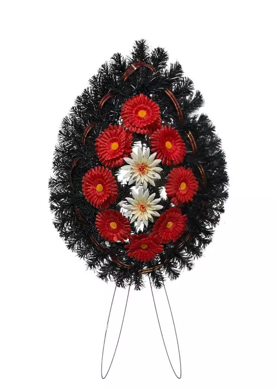 Ритуальний вінок зі штучної хвої, розміром 95*60*19 см. Вінок