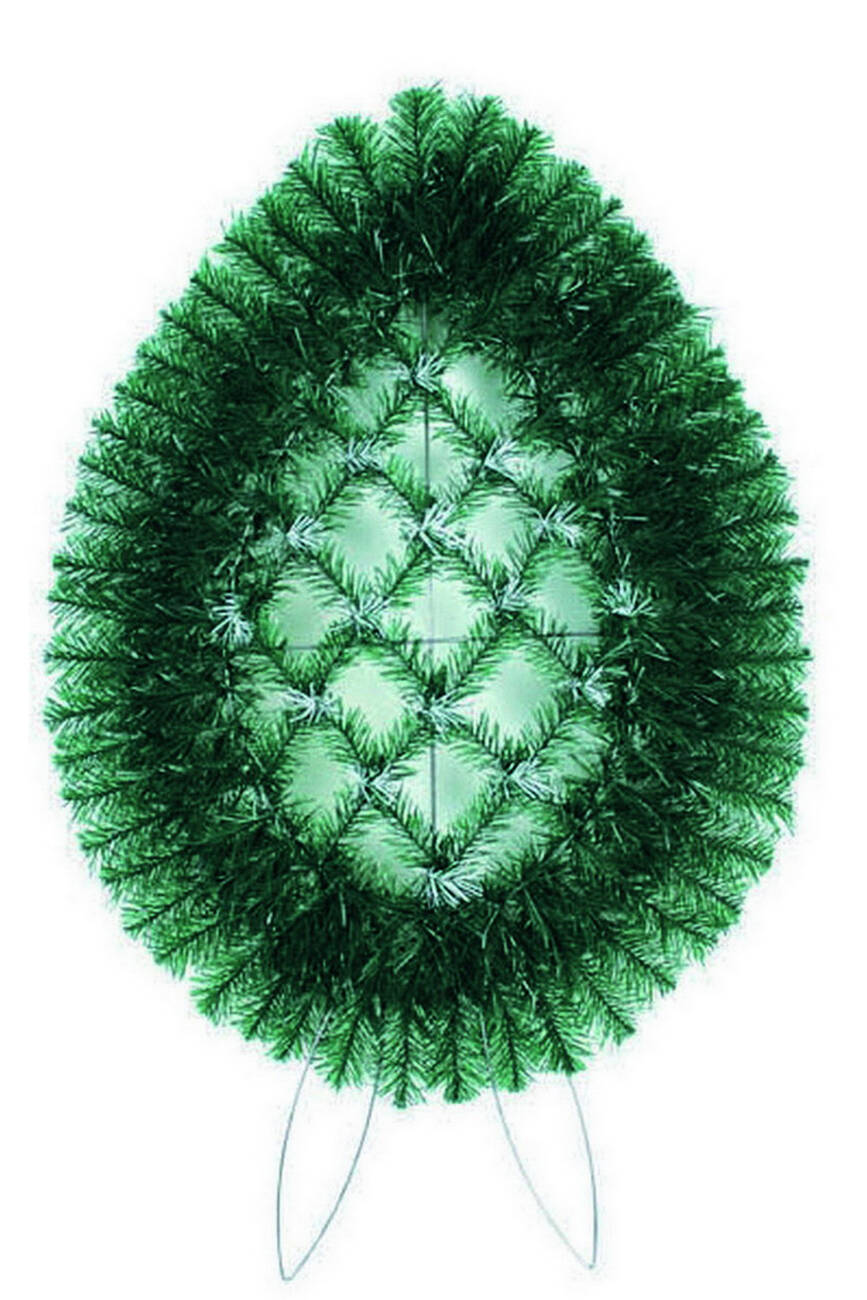 Вінок зі штучної хвої, по центру заплетений сіткой, розмір 95*60*19