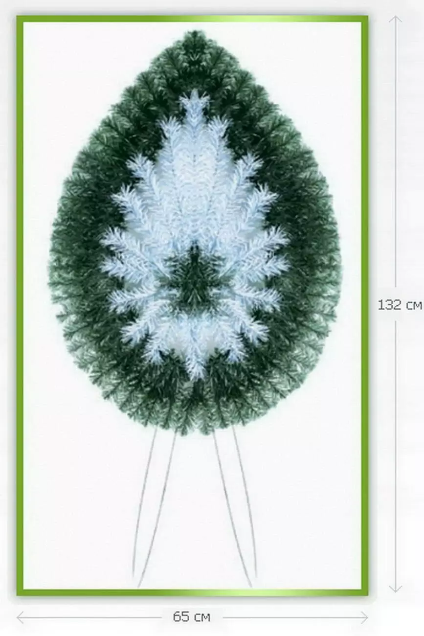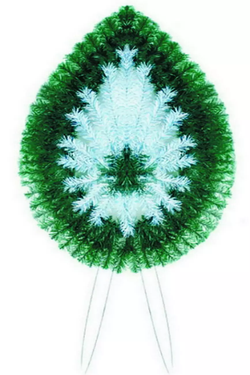 Вінок зі штучної хвої у вигляді краплі з білою хвоєю у центрі
