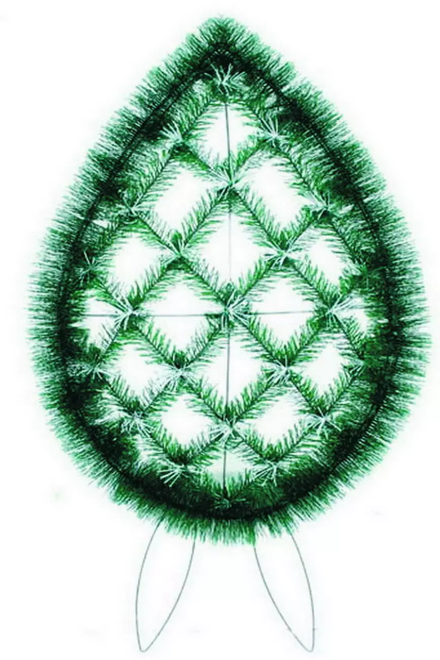 хвоєю на переплетенні, по краю вінка йорш, розмір 143*66*19 см.