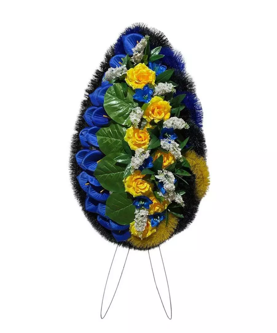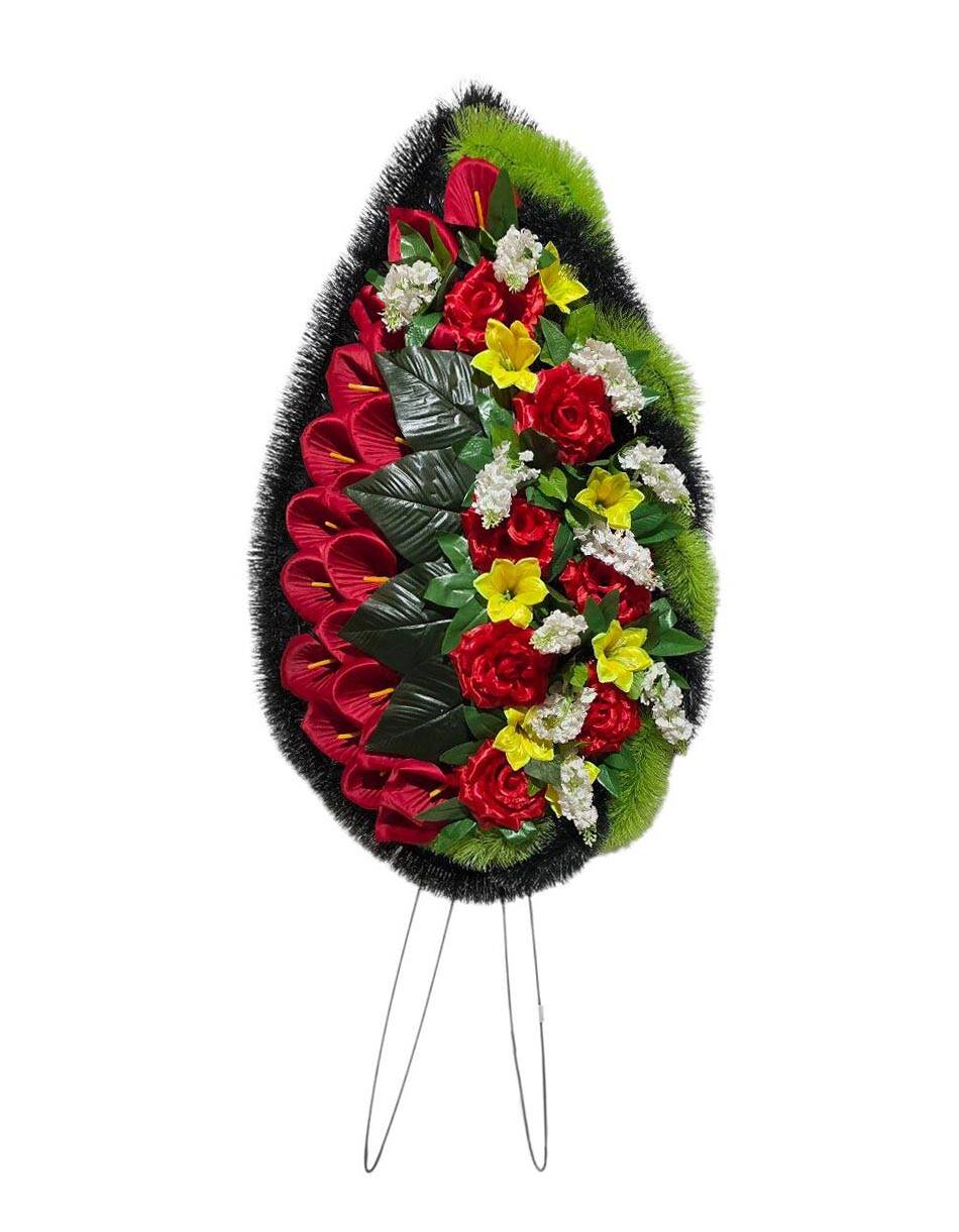 Ритуальний вінок зі штучної хвої розміром 144*66*17 см. Вінок