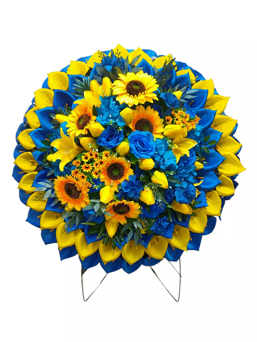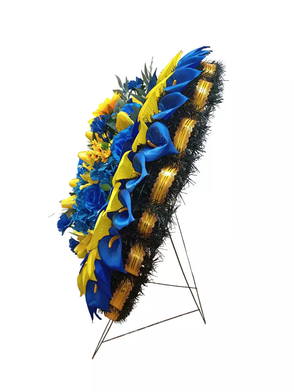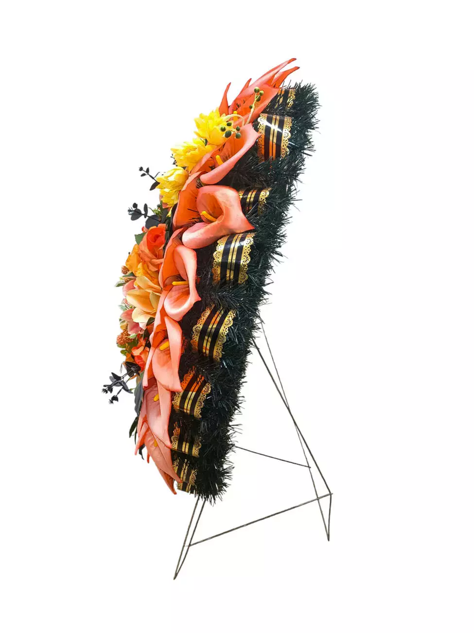 Вінок зі штучної хвої на ніжках, прикрашений головами лілії,
