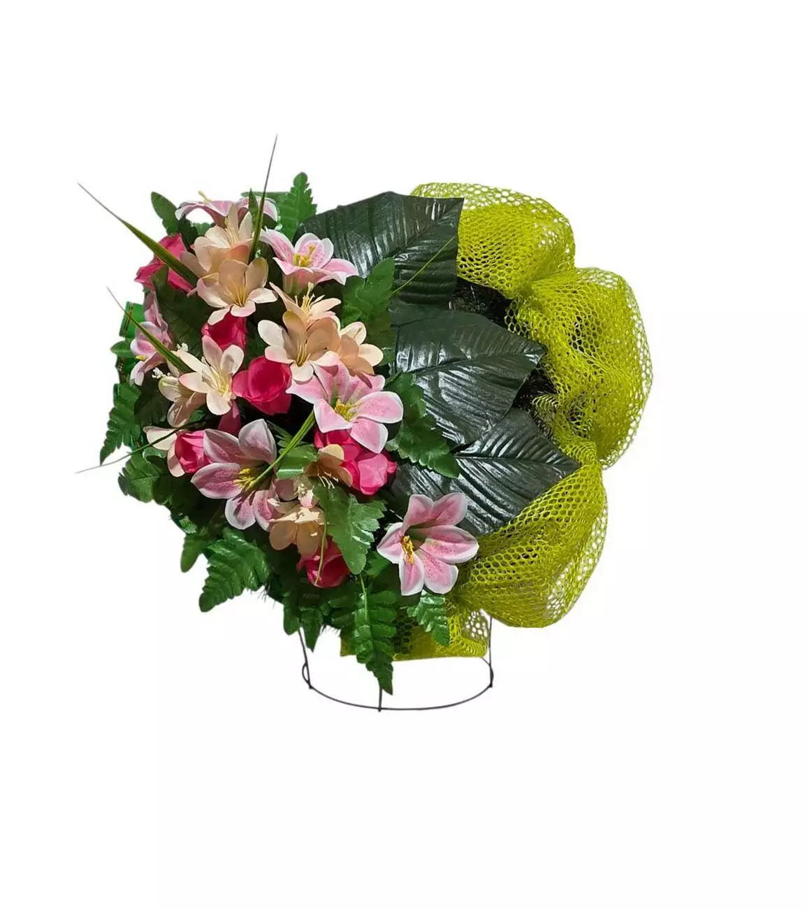 прикрашений головами троянди, лілії, листям папороті, стрелиції та