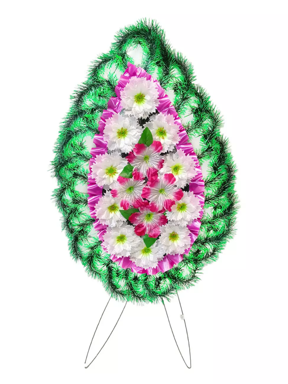 Ритуальний вінок зі штучної хвої розміром 120*63*9 см. Вінок