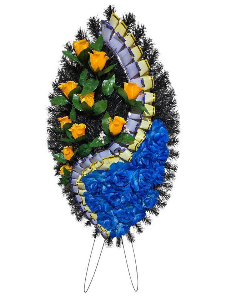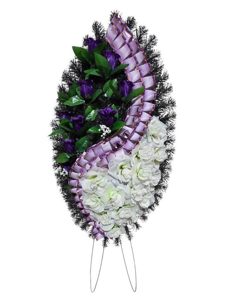 Ритуальний вінок зі штучної хвої розміром 128*55*18 см. Вінок