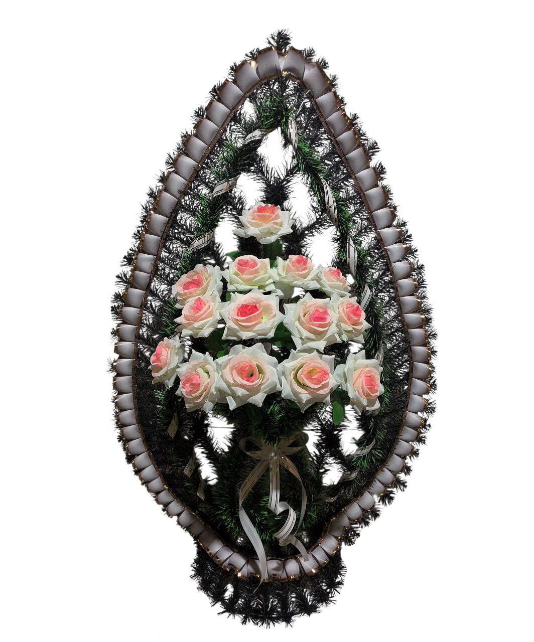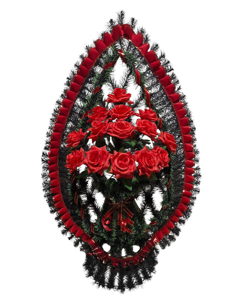 Ритуальний вінок зі штучної хвої розміром 129*85*40 см. Вінок