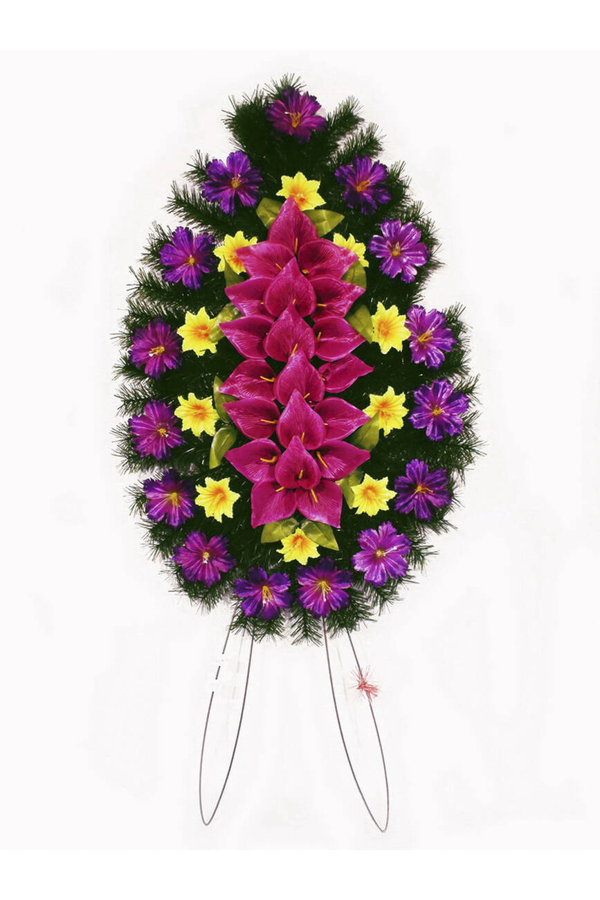 Ритуальний вінок зі штучної хвої розміром 130*63*12 см. Вінок