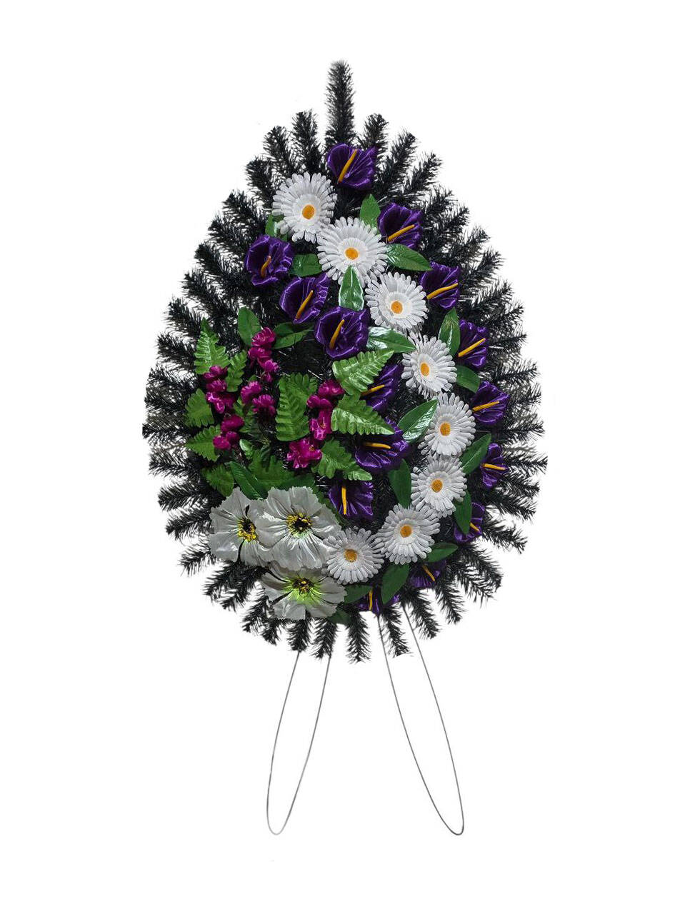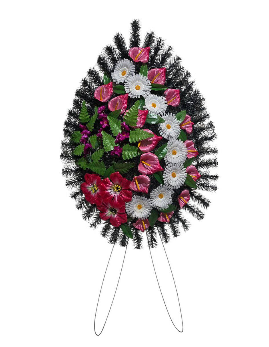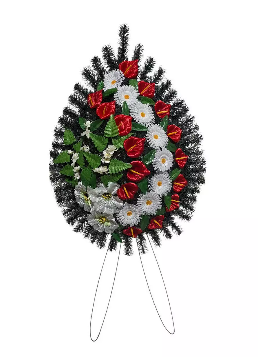 Ритуальний вінок зі штучної хвої, розміром 130*68*14 см. Вінок
