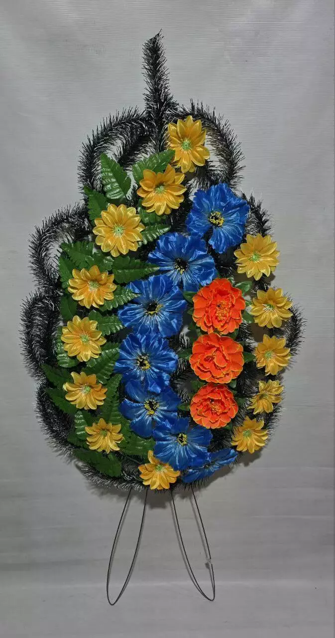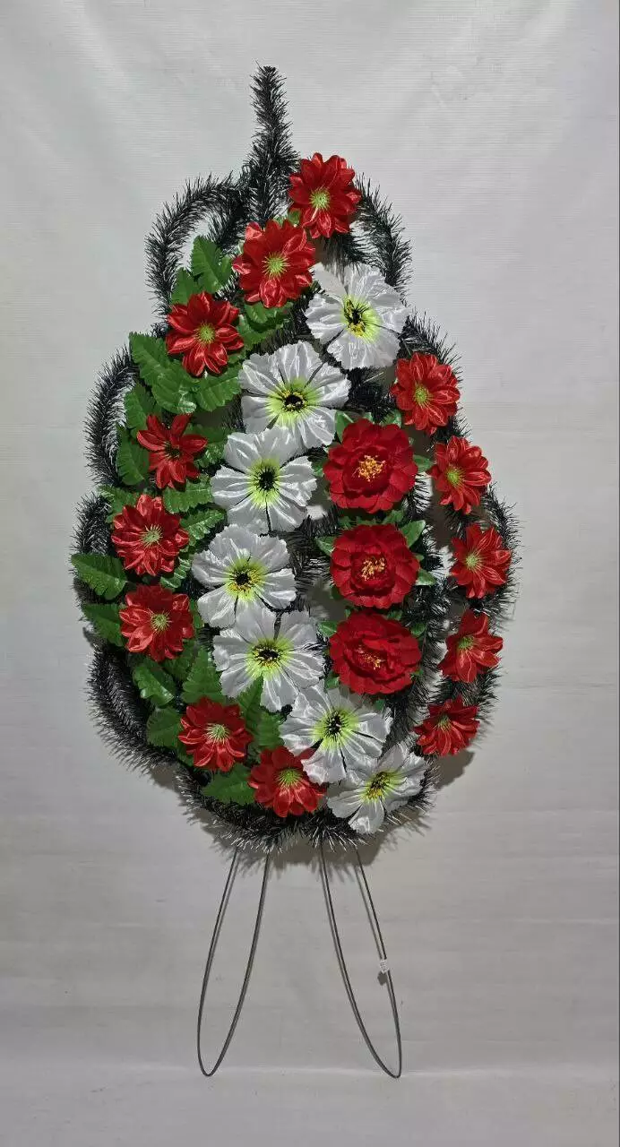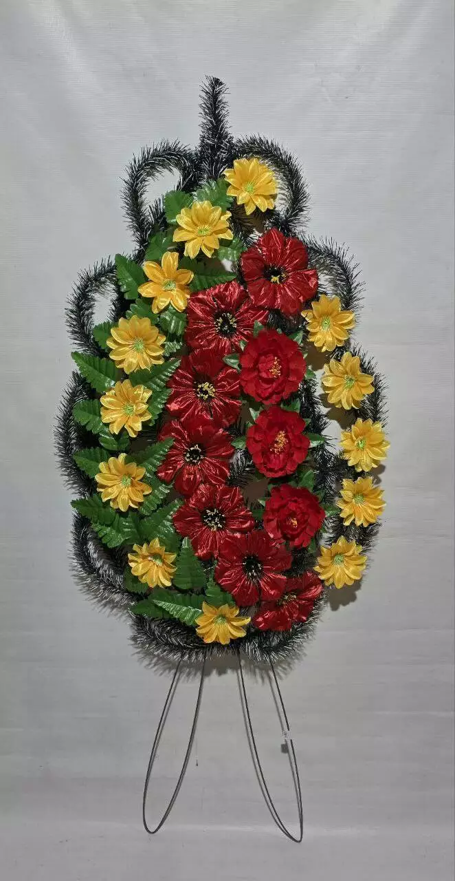 Ритуальний вінок зі штучної хвої, розміром 135*75*13 см. Вінок