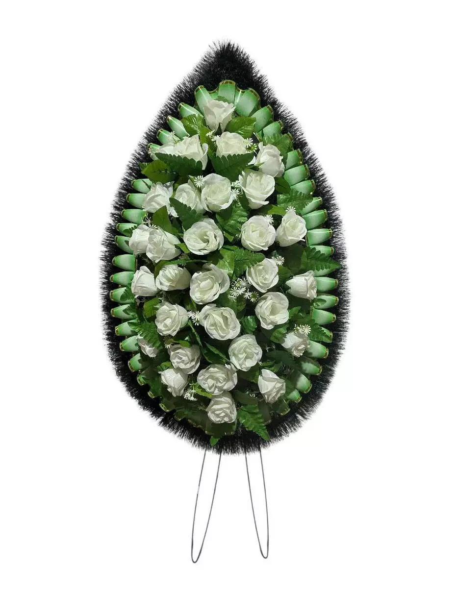 Ритуальний вінок зі штучної хвої розміром 137*70*14 см. Вінок
