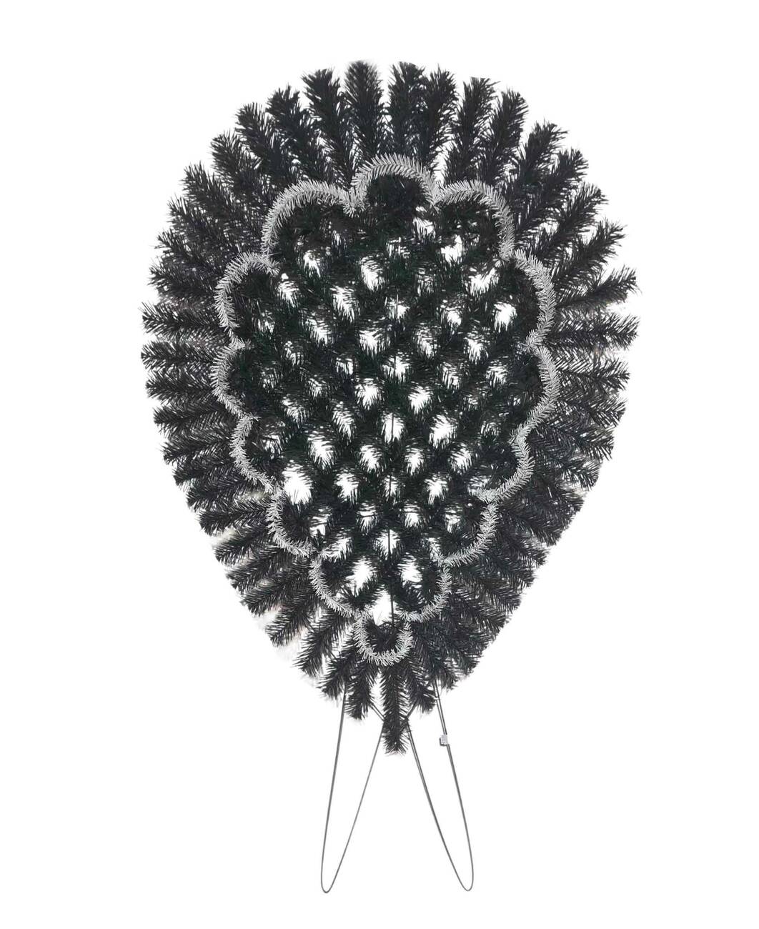 Вінок зі штучної хвої у формі щита, по центру заплетений сіткой, у