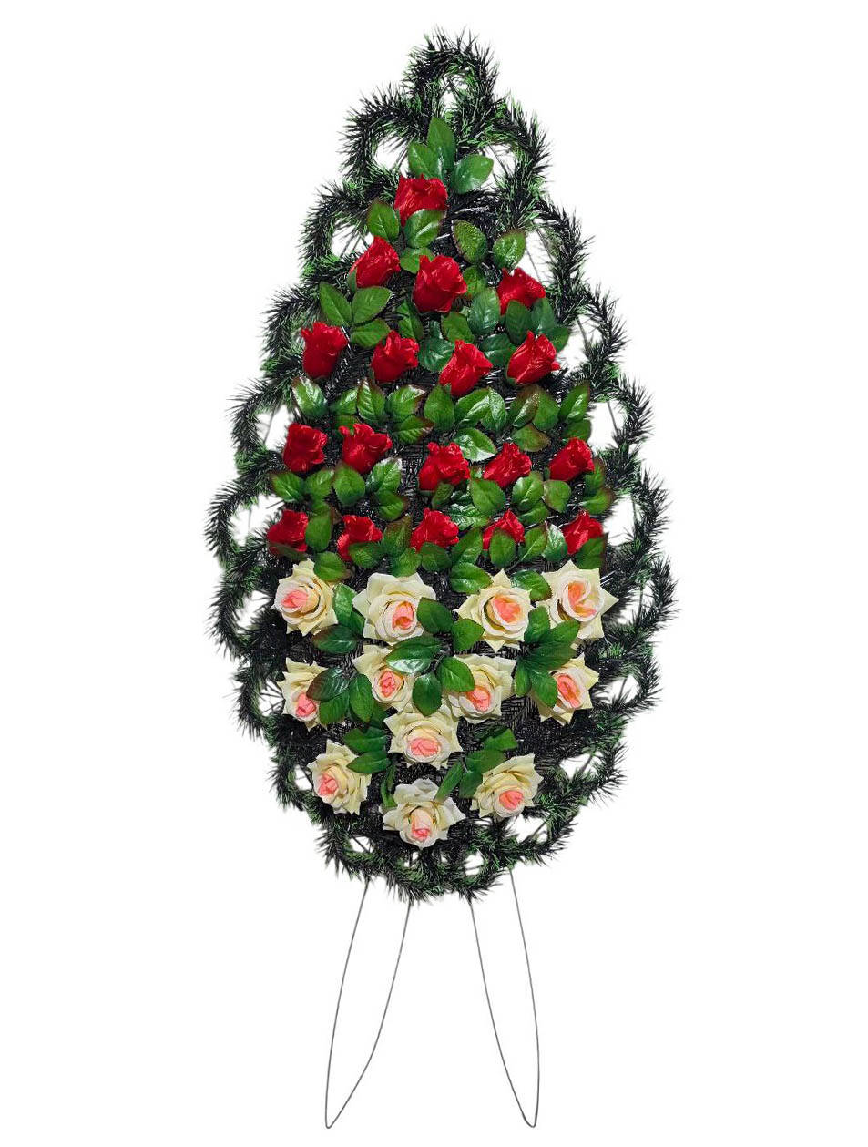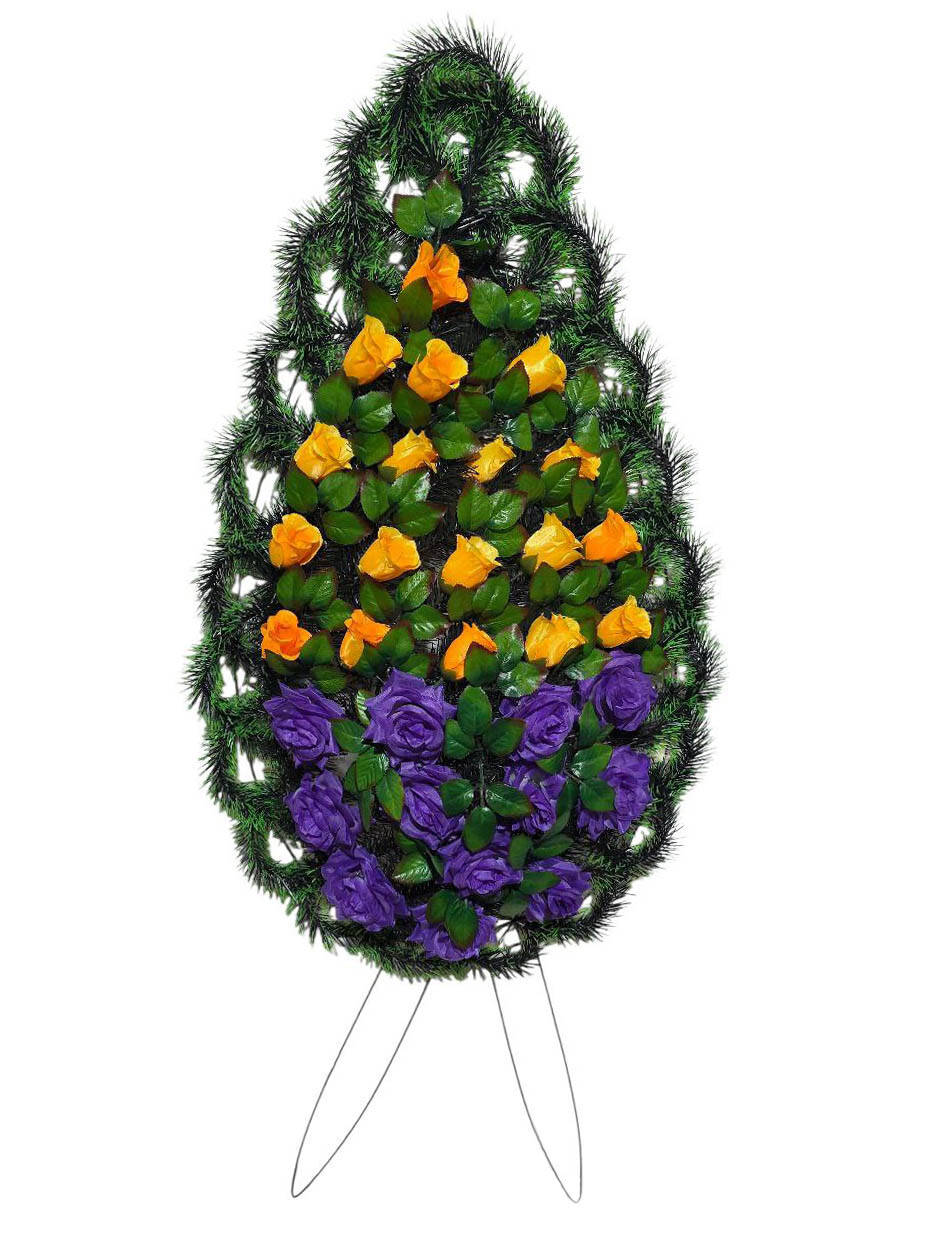 Ритуальний вінок зі штучної хвої розміром 140*58*13 см. Вінок