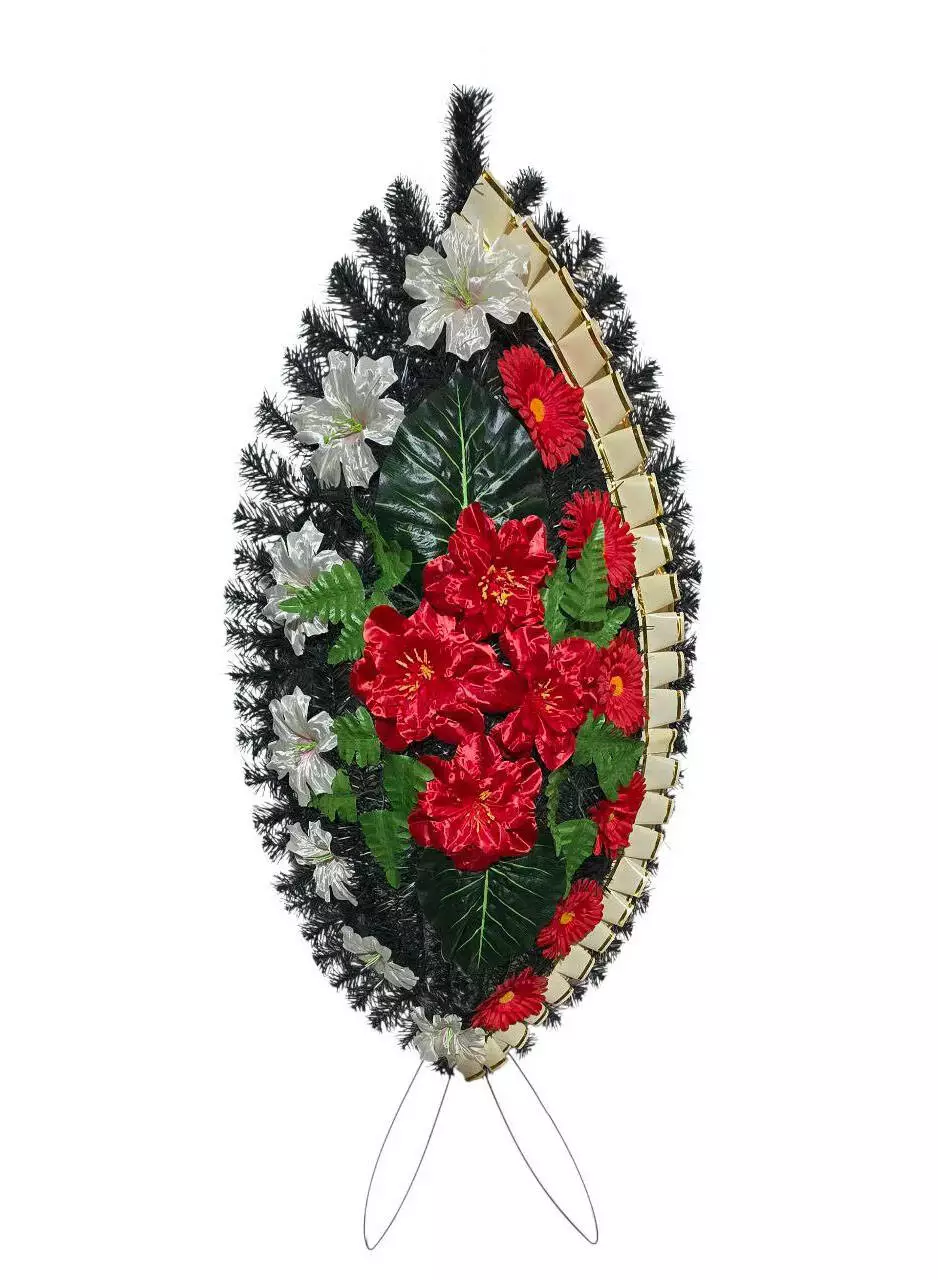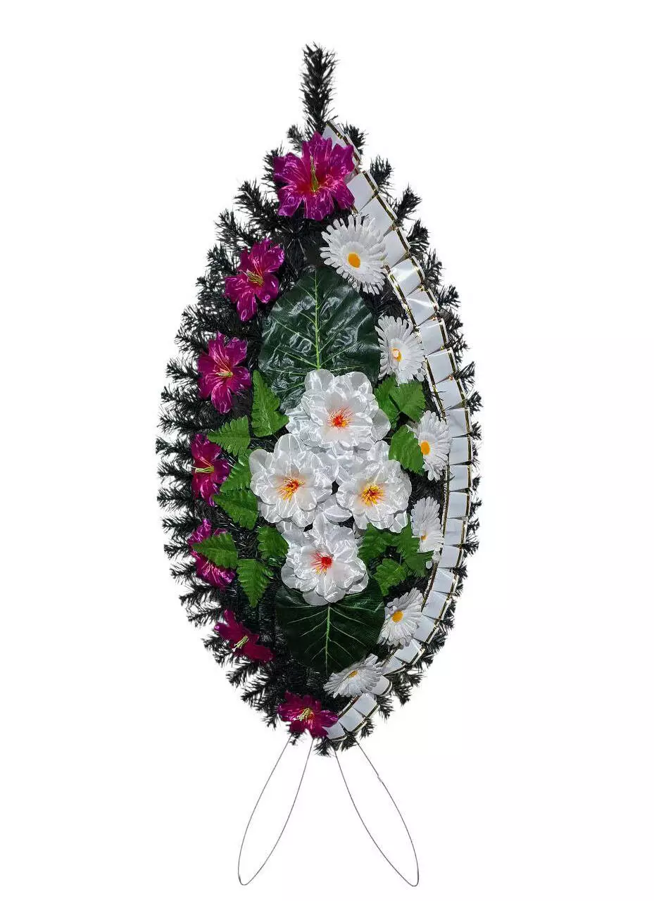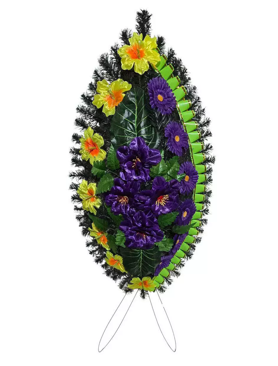 Ритуальний вінок зі штучної хвої розміром 148*60*18 см. Вінок