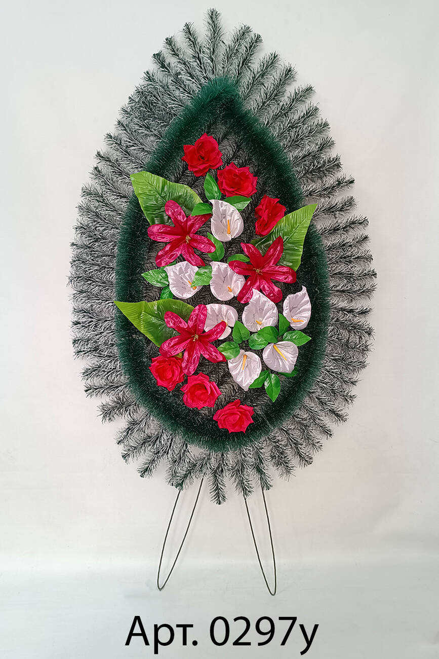 Ритуальний вінок зі штучної хвої розміром 164*85*18 см. Вінок