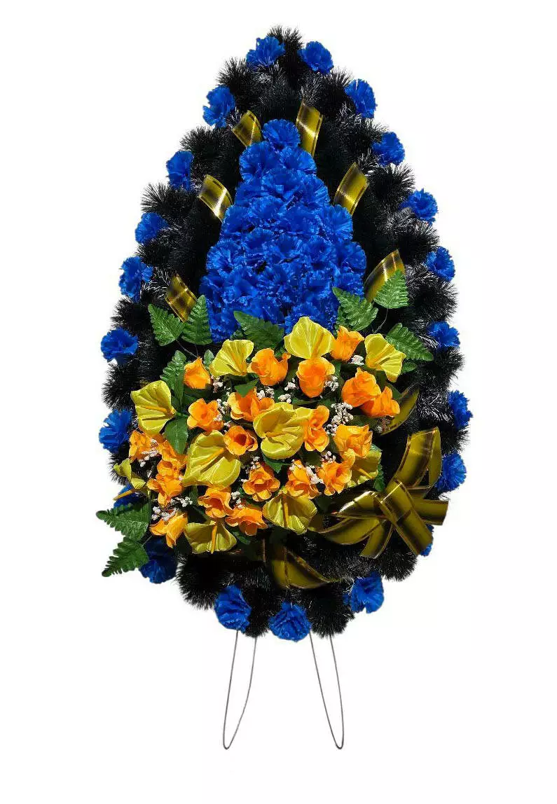 Ритуальний вінок зі штучної хвої розміром 170*72*18 см. Вінок