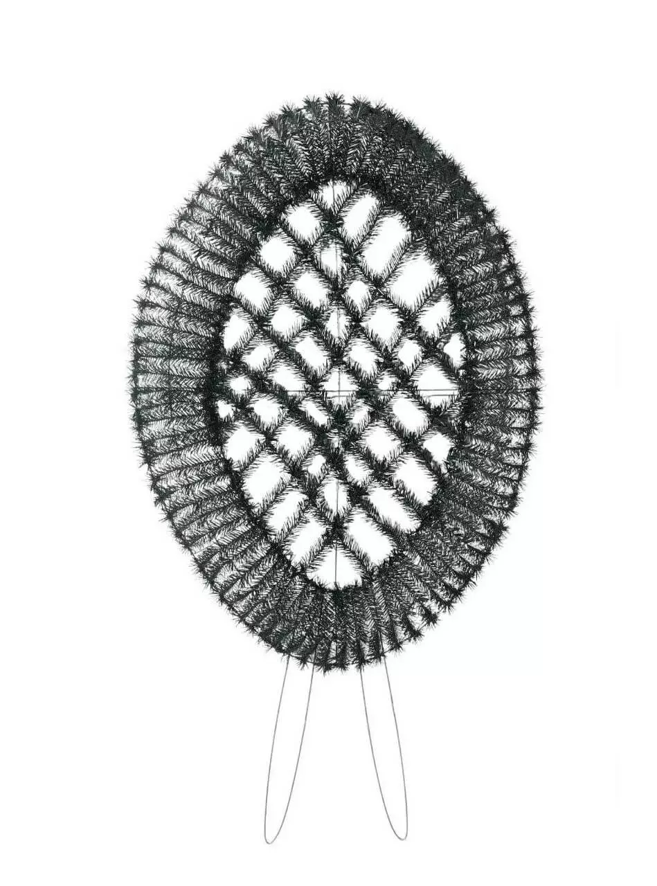 Вінок зі штучної хвої на ніжках, у формі овалу, зашитий по центру