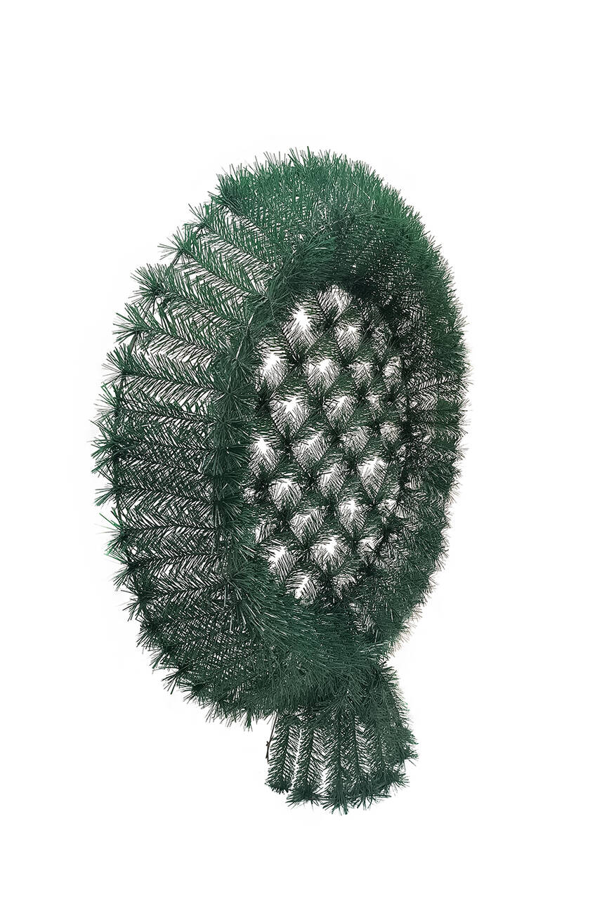 Вінок зі штучної хвої у формі кола зашитого по середині сіткою,