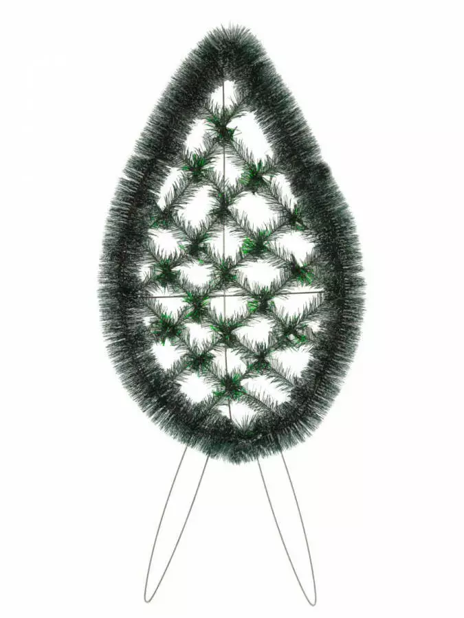 Вінок зі штучної хвої на ніжках у формі краплі, зашитий по центру