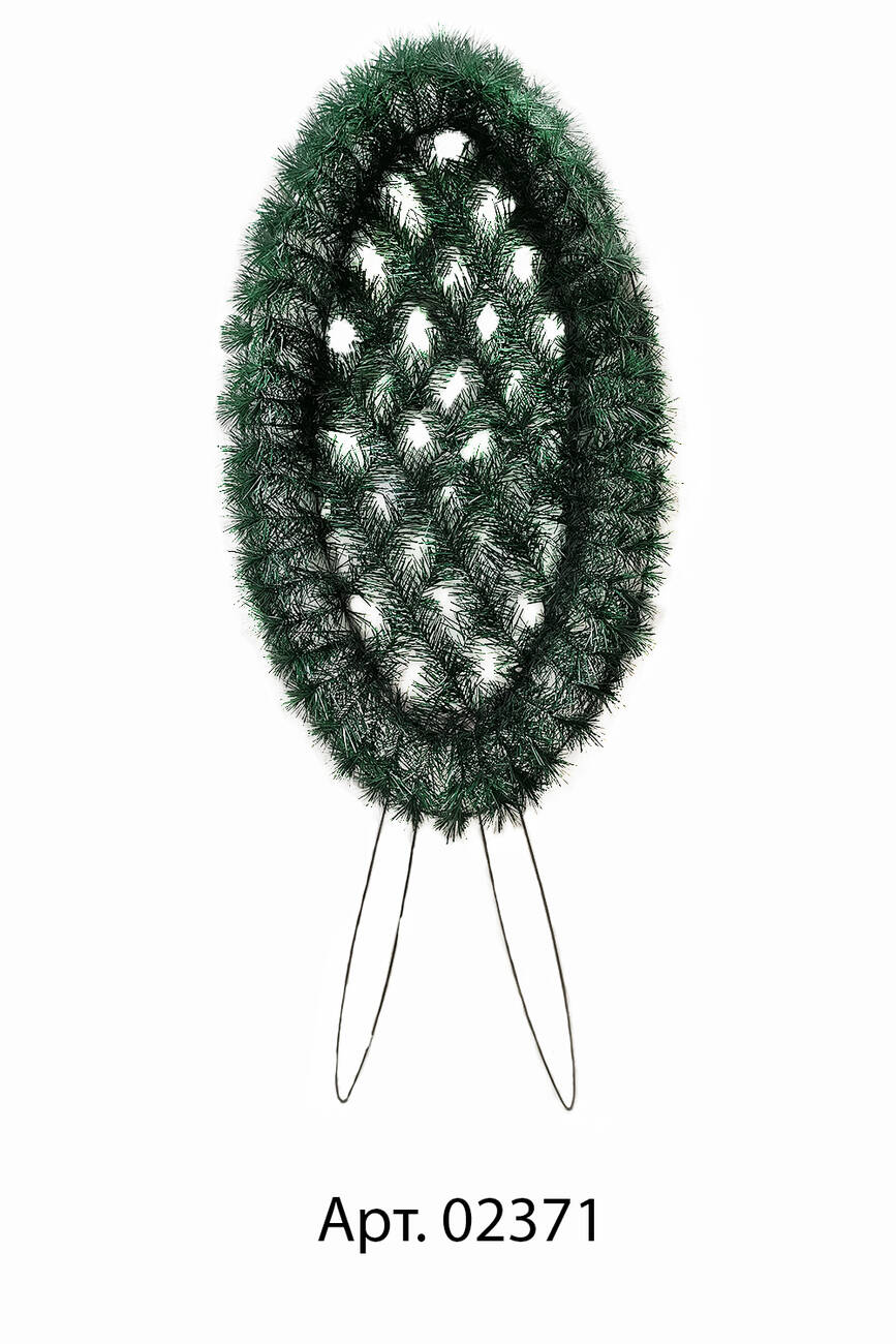 Вінок зі штучної хвої на ніжках у формі овалу, зашитий по центру