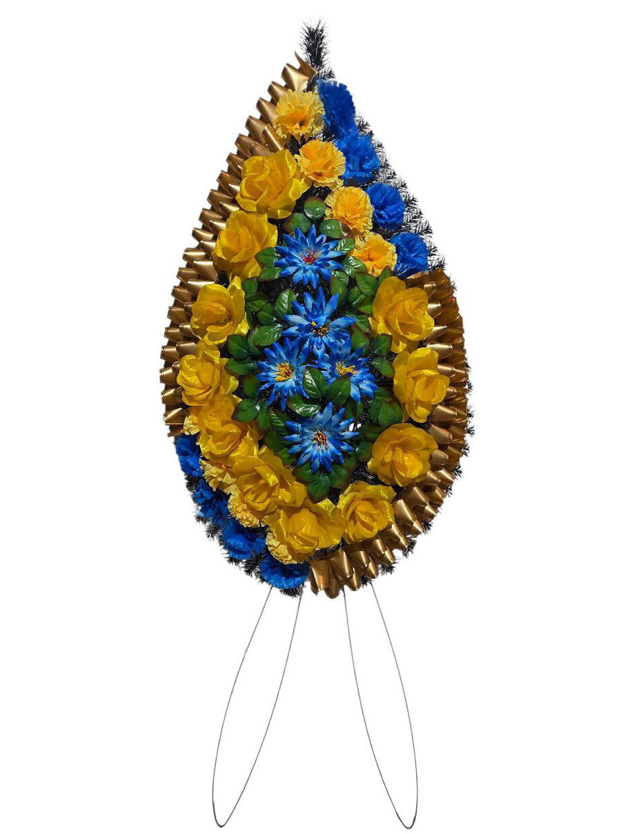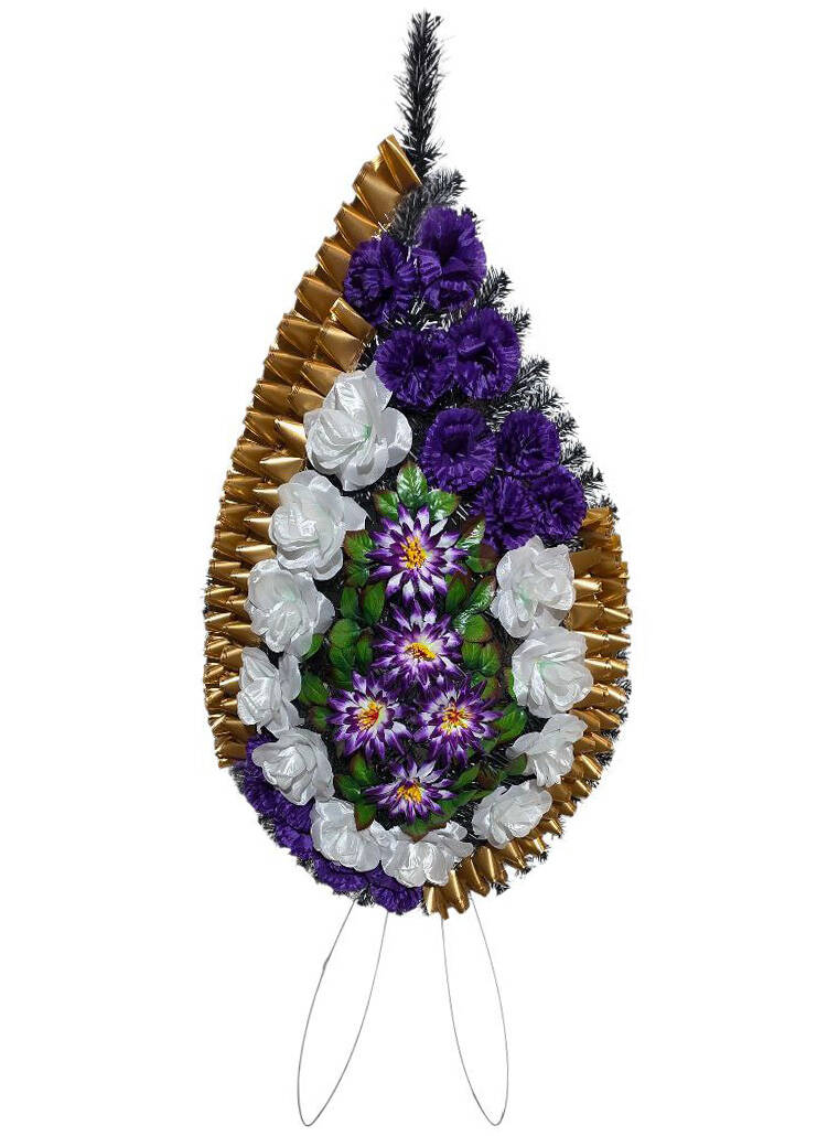 Ритуальний вінок зі штучної хвої розміром 130*60*19 см. Вінок