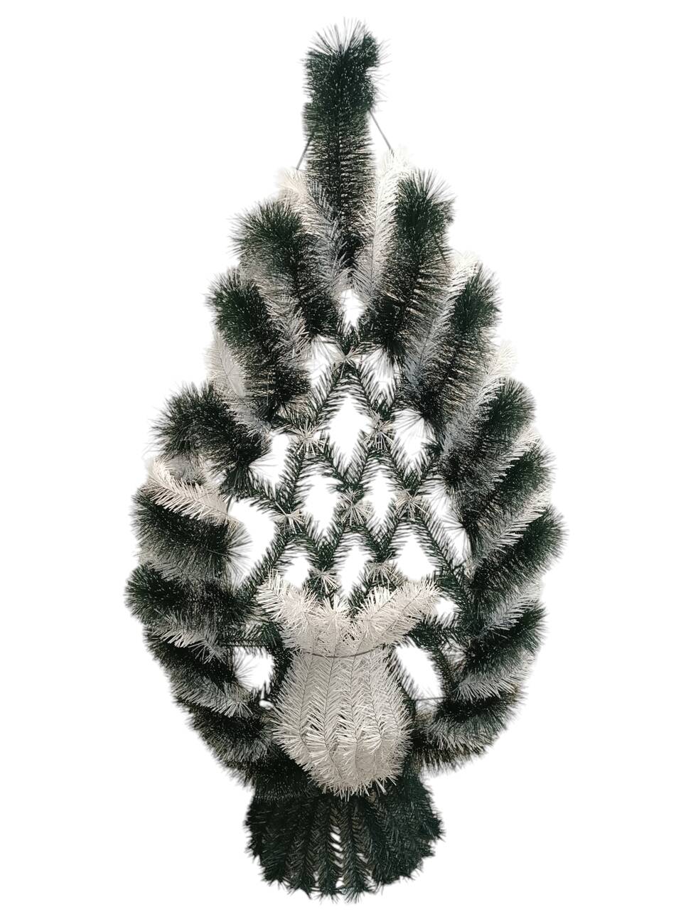 Вінок зі штучної хвої з вазою, по краю обшит двокольоровим йоршом,