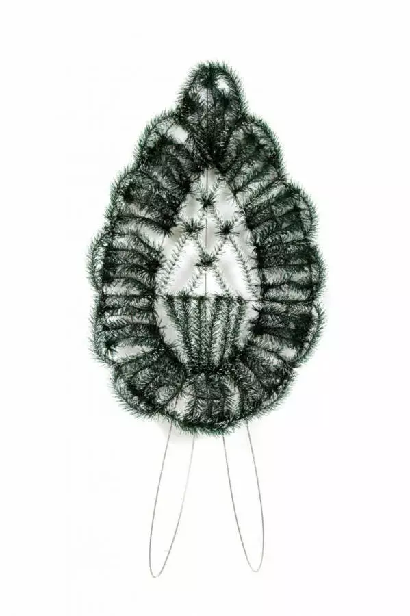 Вінок зі штучної хвої на ніжках, зверху зашитий сіткой, знизу зашит
