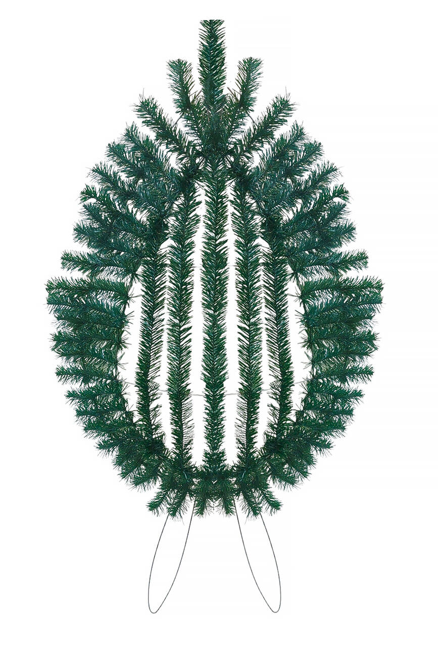 Вінок зі штучної хвої на ніжках, у формі краплі, зашитий по центру
