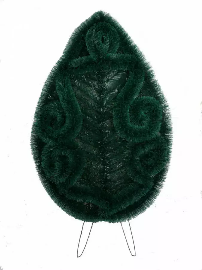 Вінок зі штучної хвої у формі краплі на ніжках, щільно зашитий з
