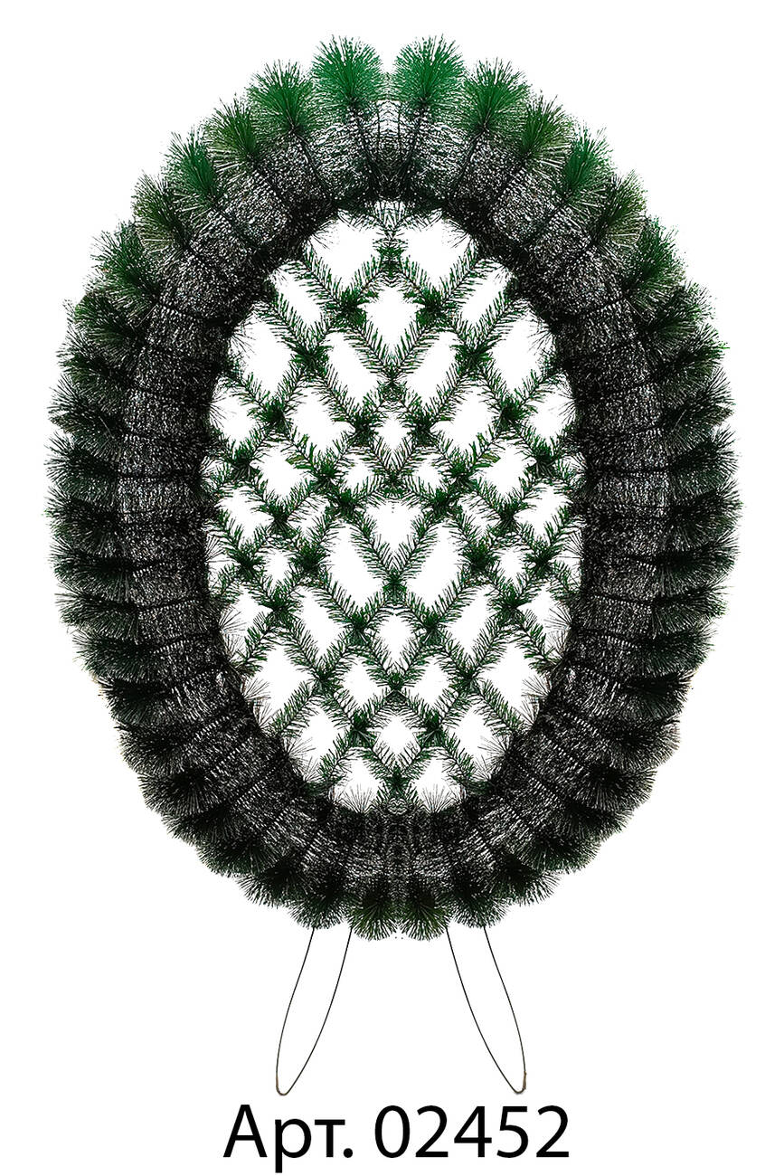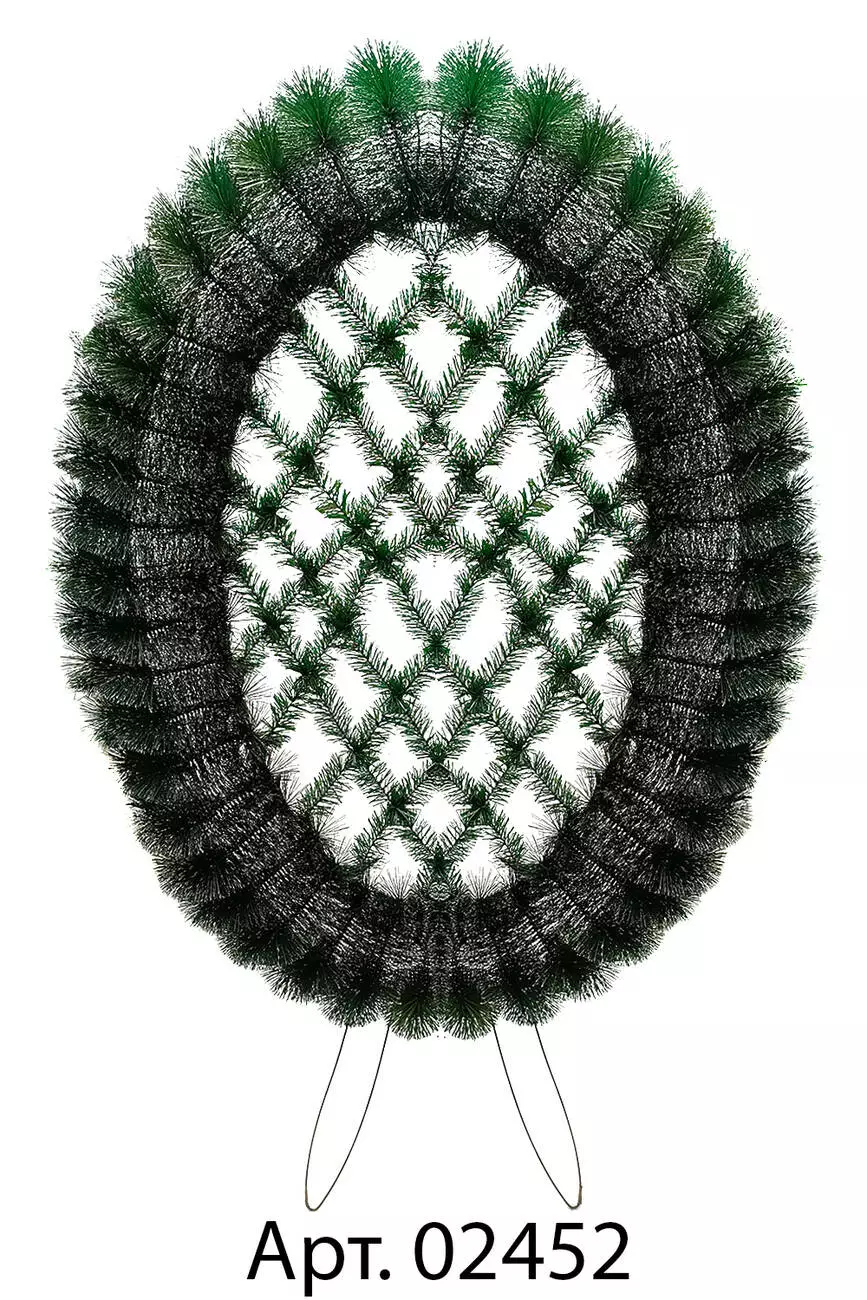 Вінок зі штучної хвої на ніжках, у формі овалу, зашитий по центру
