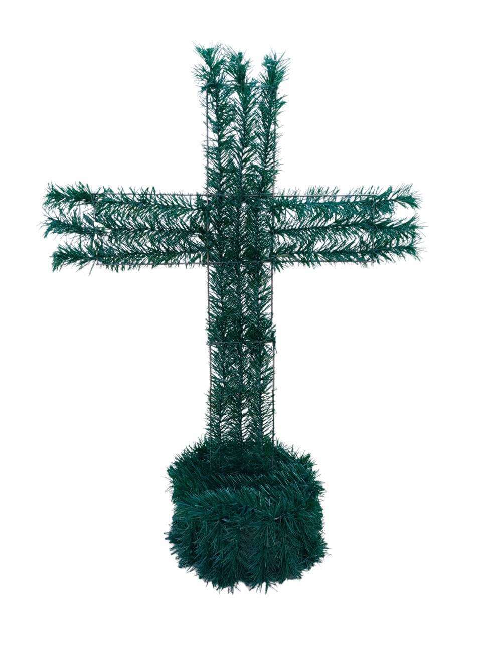 Вінок зі штучної хвої у формі хреста на підставці, розмір 80*55*23