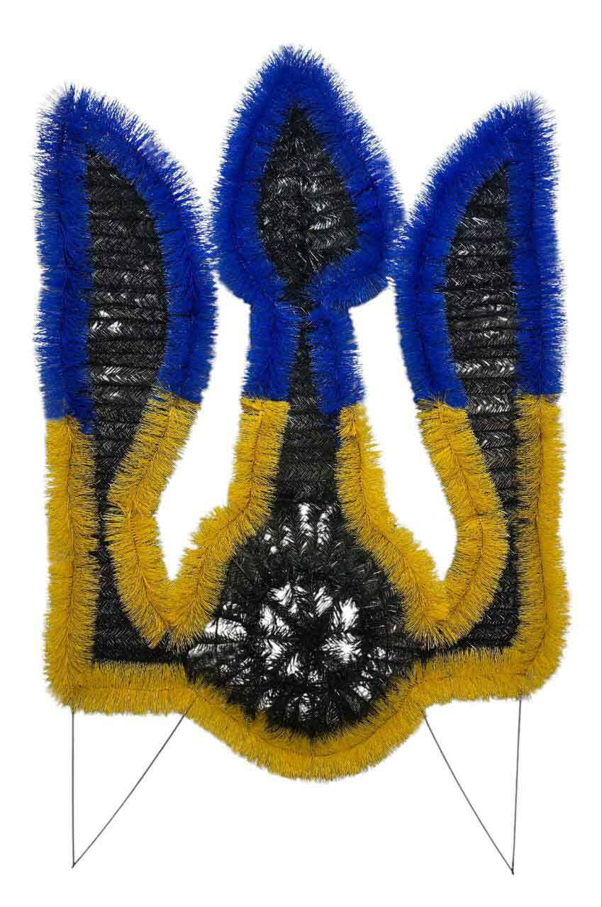 Ритуальний вінок зі штучної хвої у формі тризуба жовто-синього