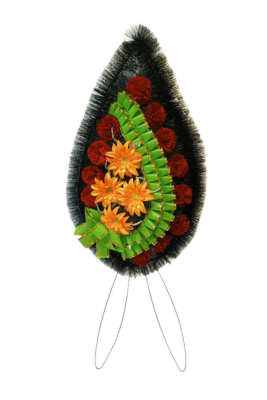 Ритуальний вінок зі штучної хвої розміром 130*45*15 см. Вінок