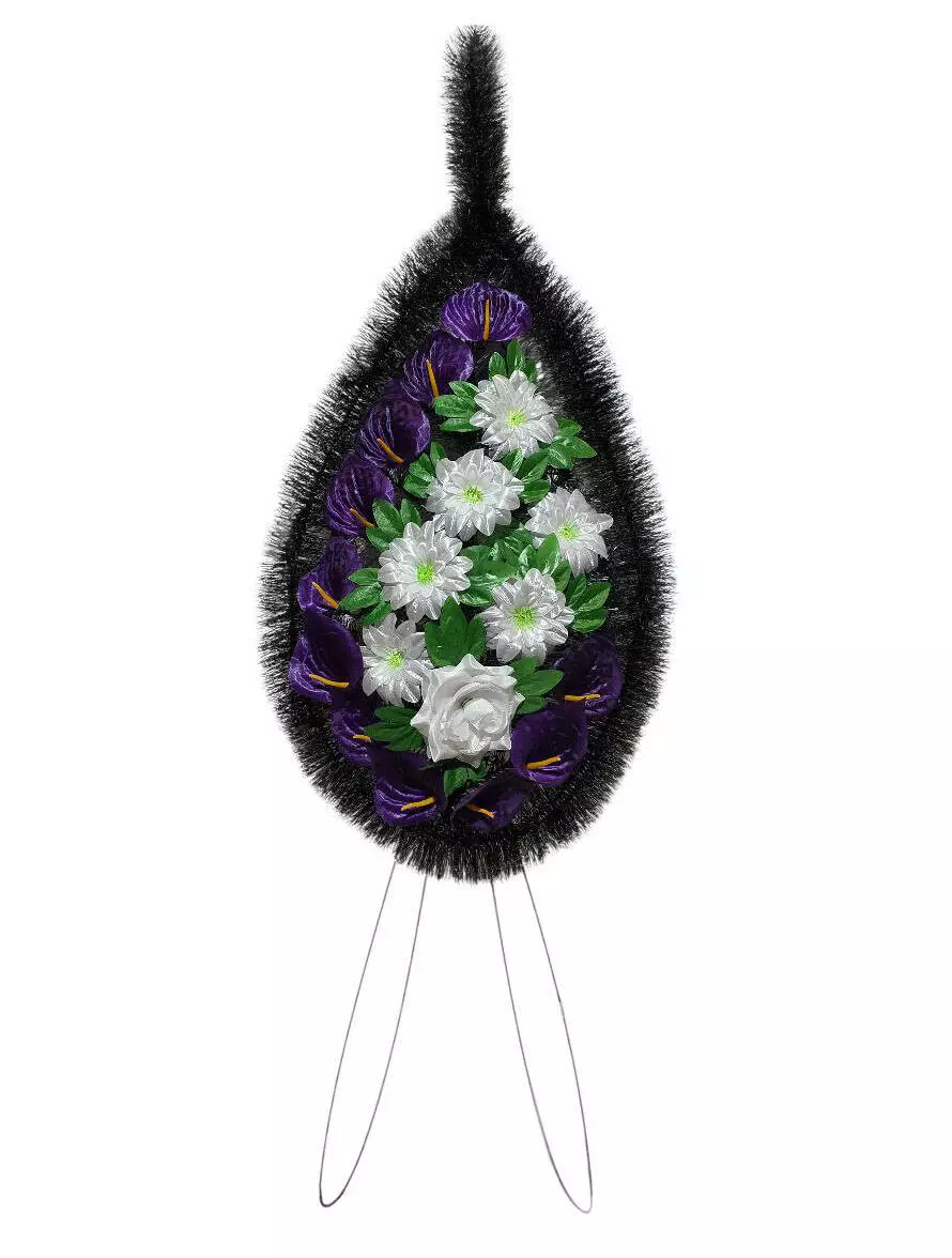 Ритуальний вінок зі штучної хвої з йоршом розміром 145*60*15 см.