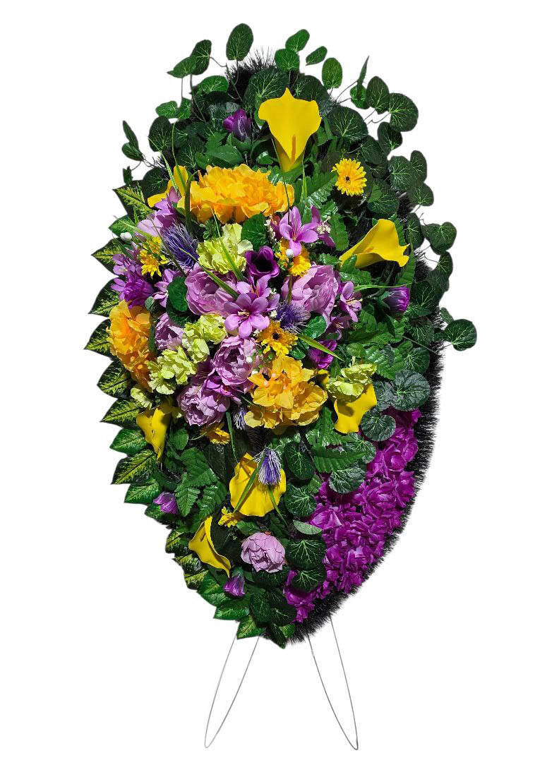 Ритуальний вінок зі штучної хвої з йоршом розміром 180*75*13 см.