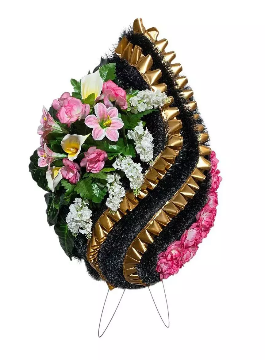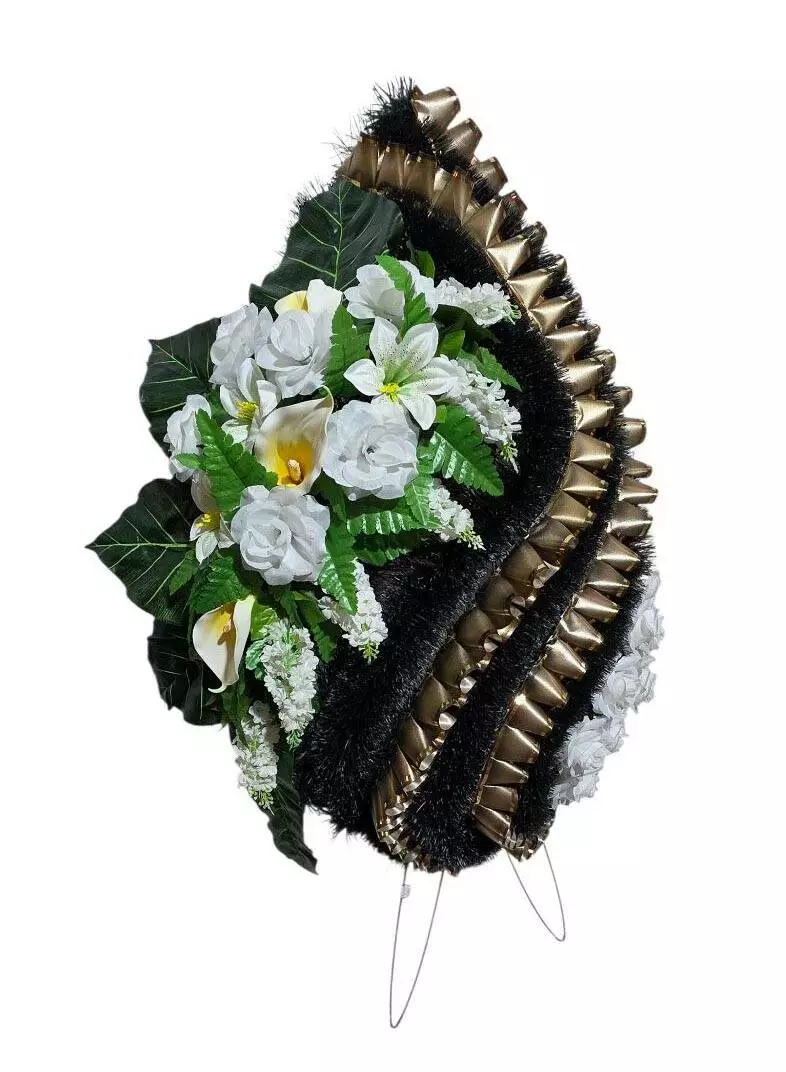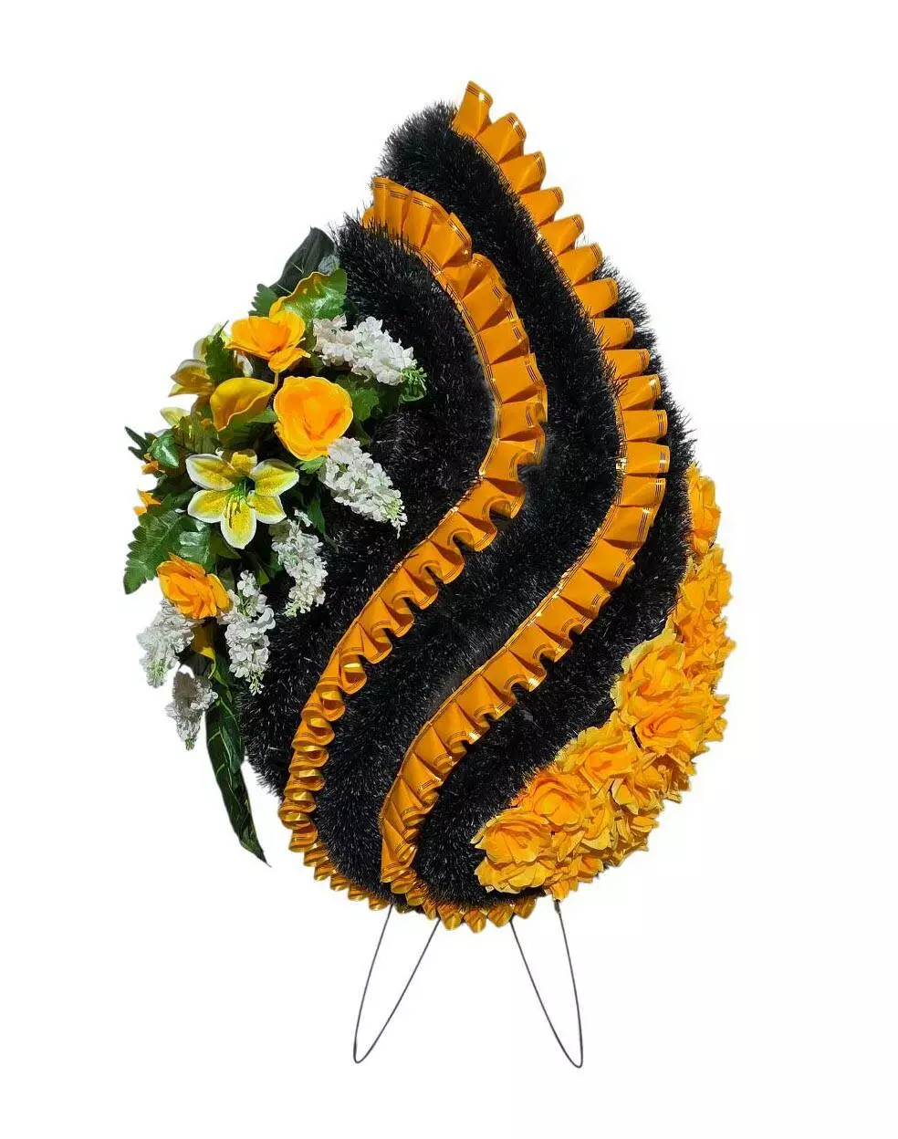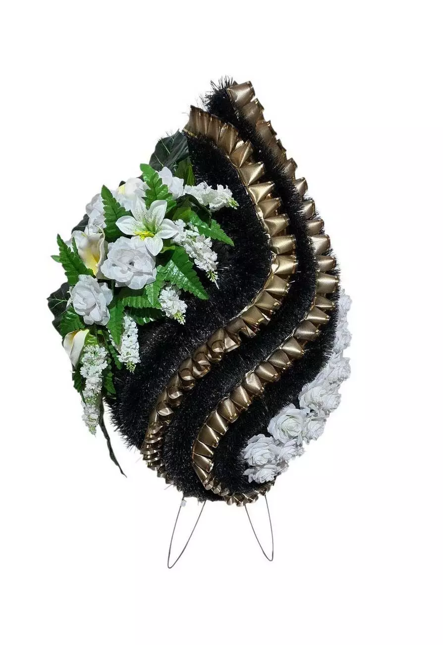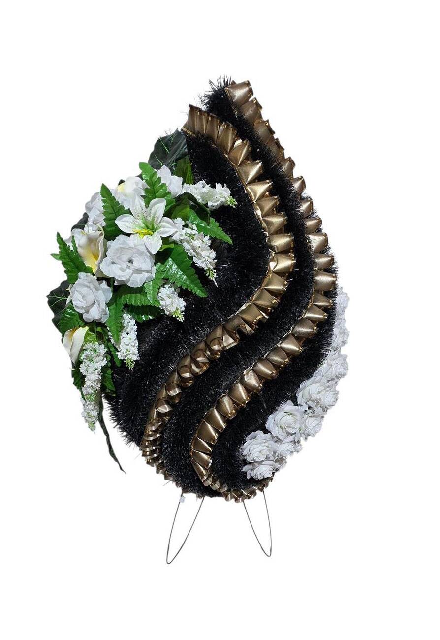 Ритуальний вінок зі штучної хвої розміром 132*59*30 см. Вінок