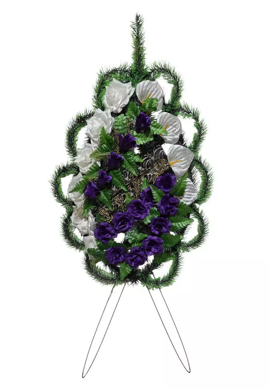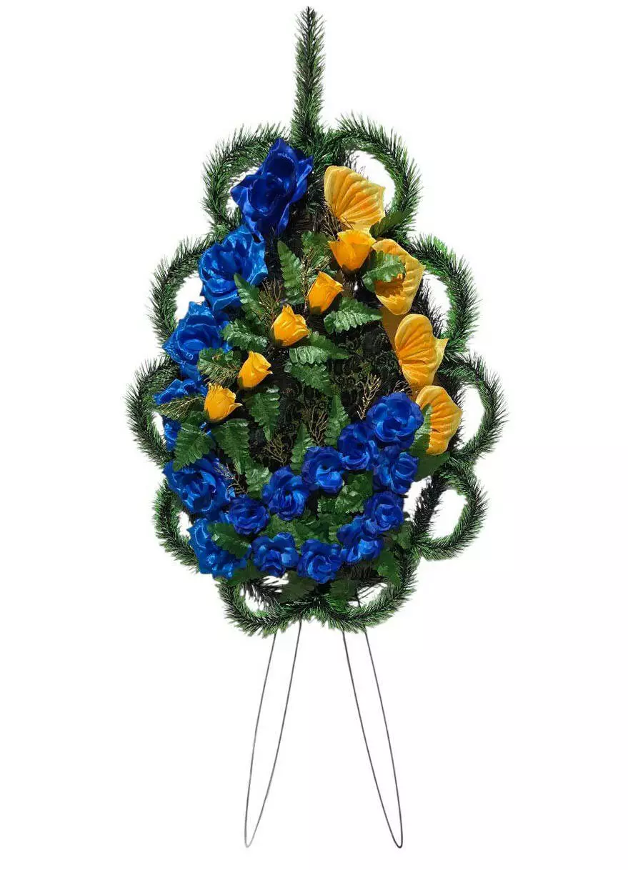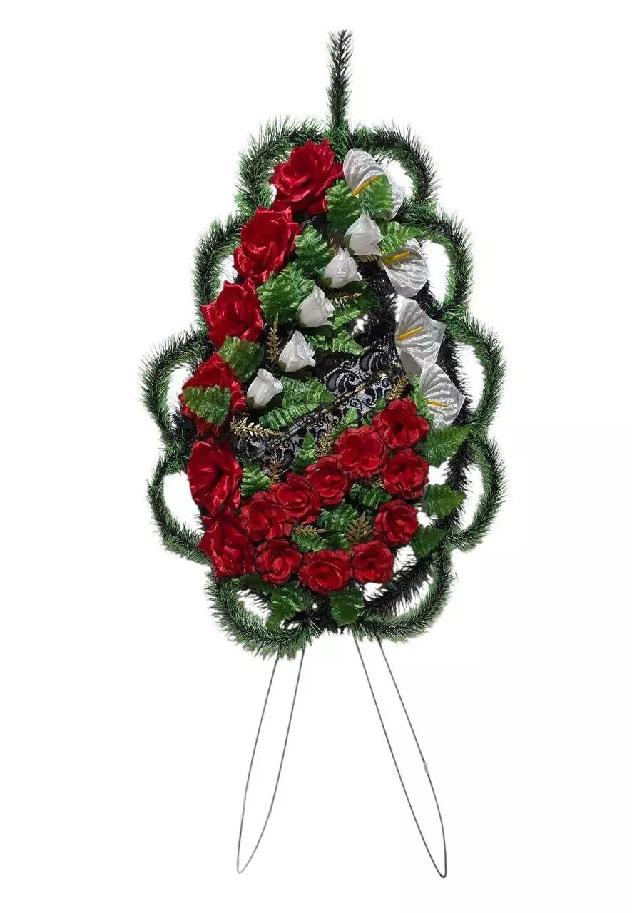 Ритуальний вінок зі штучної хвої розміром 142*70*17 см. Вінок