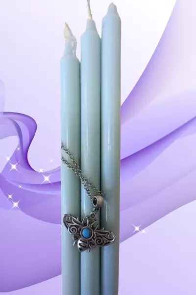 - Блакитний колір відповідає горловій чакрі Вишудхе. Блакитні свічки використовують для гармонізації внутрішнього стану, успіху в договореностях, розкриття творчого потенціалу та успішної комунікації.
